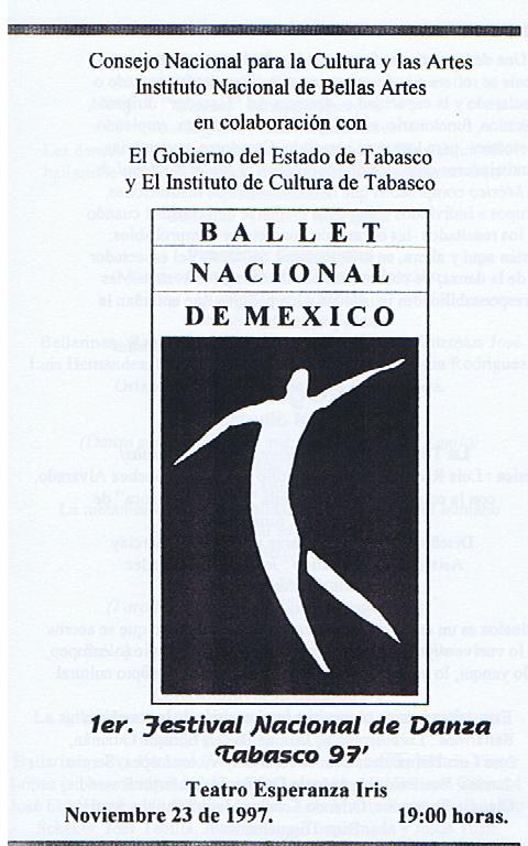 Ballet Nacional de México, “1er Festival Nacional de Danza Tabasco 1997,” ReDCA-Eventos, consulta 10 de marzo de 2026, http://redca.uaq.mx/eventos/items/show/317.