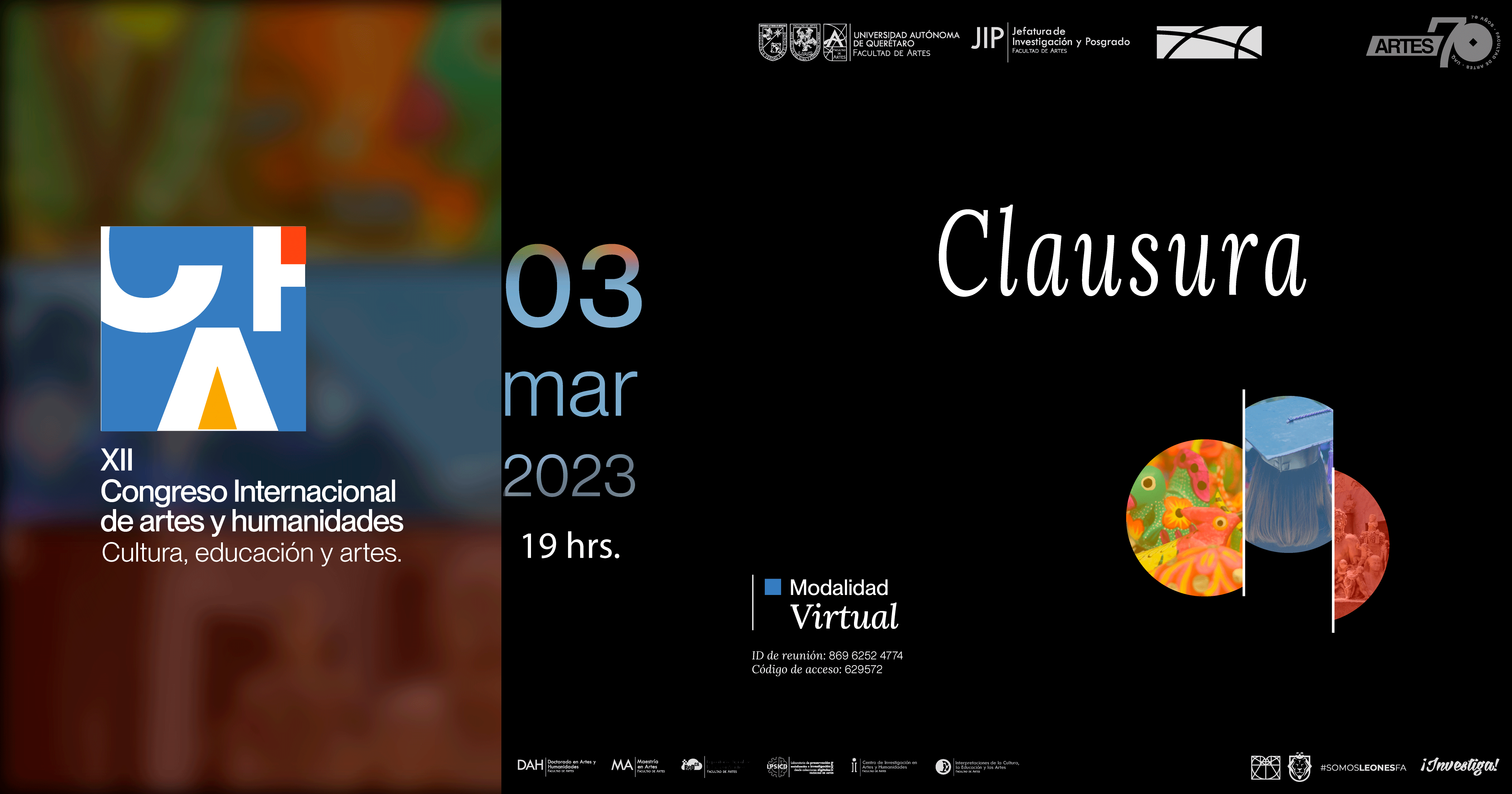 Clausura en la que se da el cierre de las actividades del XII CIAH. 03 de marzo de 2023 a las 19 hrs. en modalidad virtual