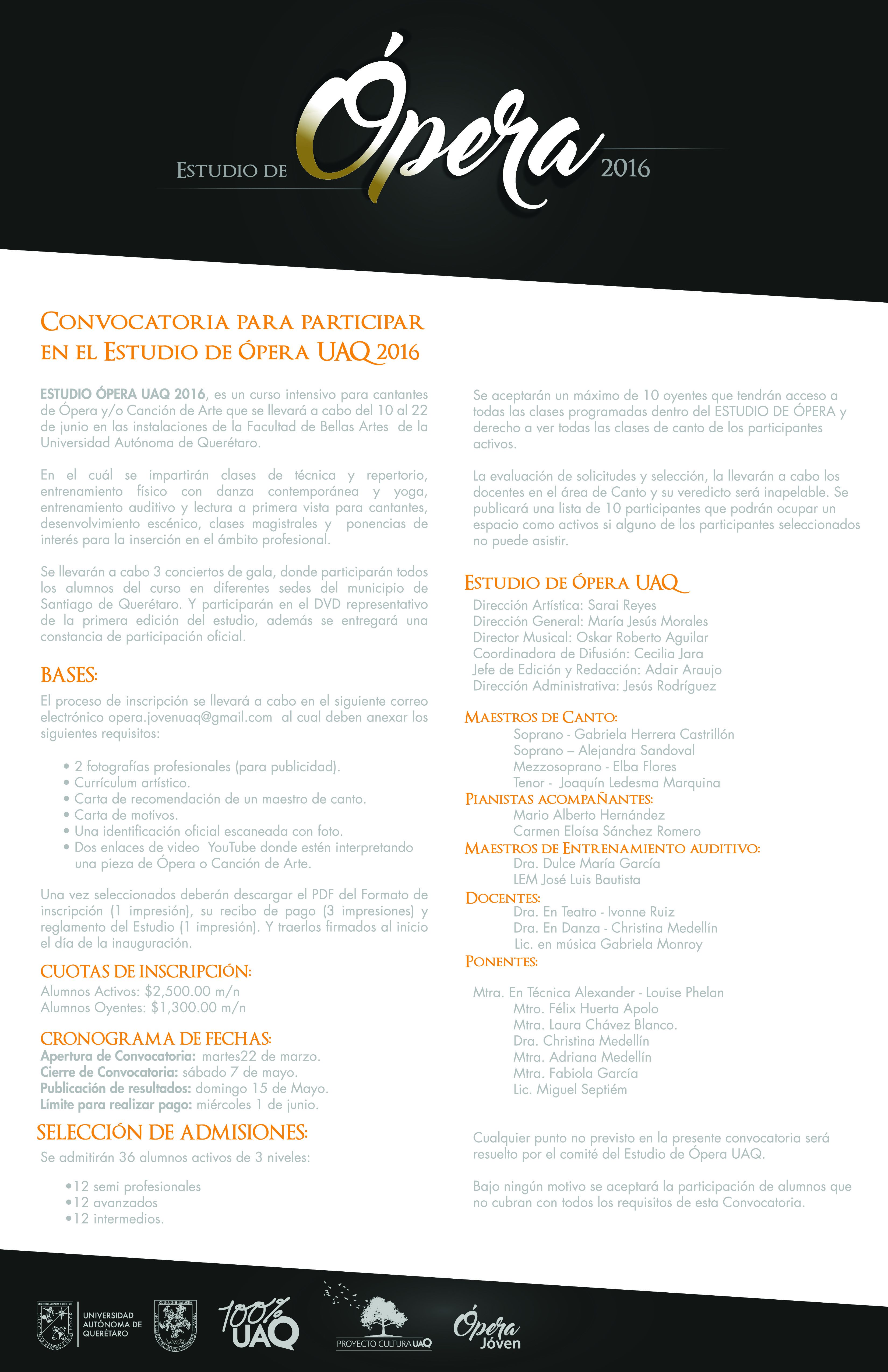 Convocatoria para participar en el Estudio de Ópera UAQ 2016
