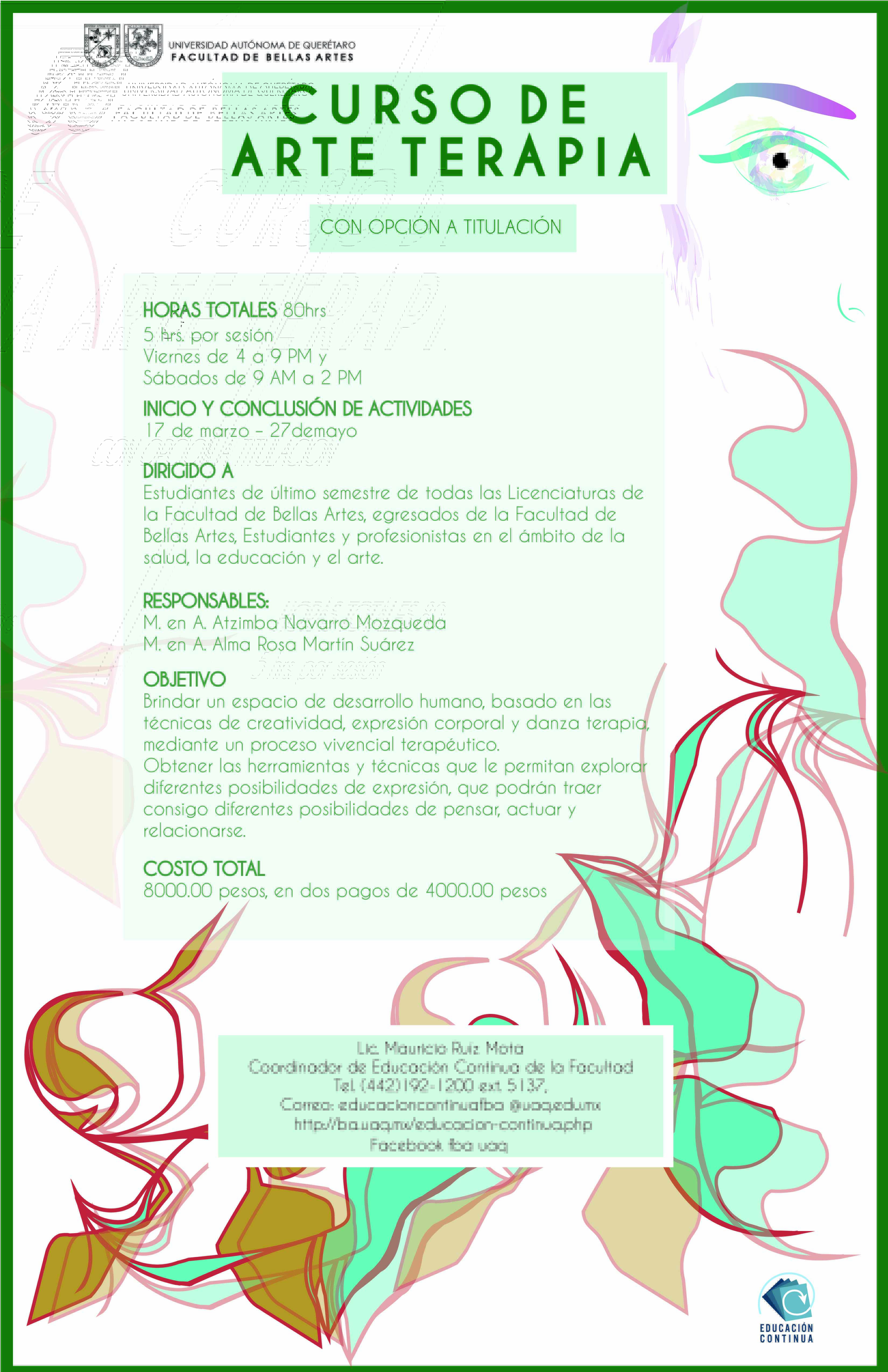 Responsables: M. en A. Atzimba Navarro Mazqueda y M. en A. Alma Rosa Martín Suárez, “Curso de Arte Terapia,” ReDCA-Eventos, consulta 10 de marzo de 2026, http://redca.uaq.mx/eventos/items/show/61.