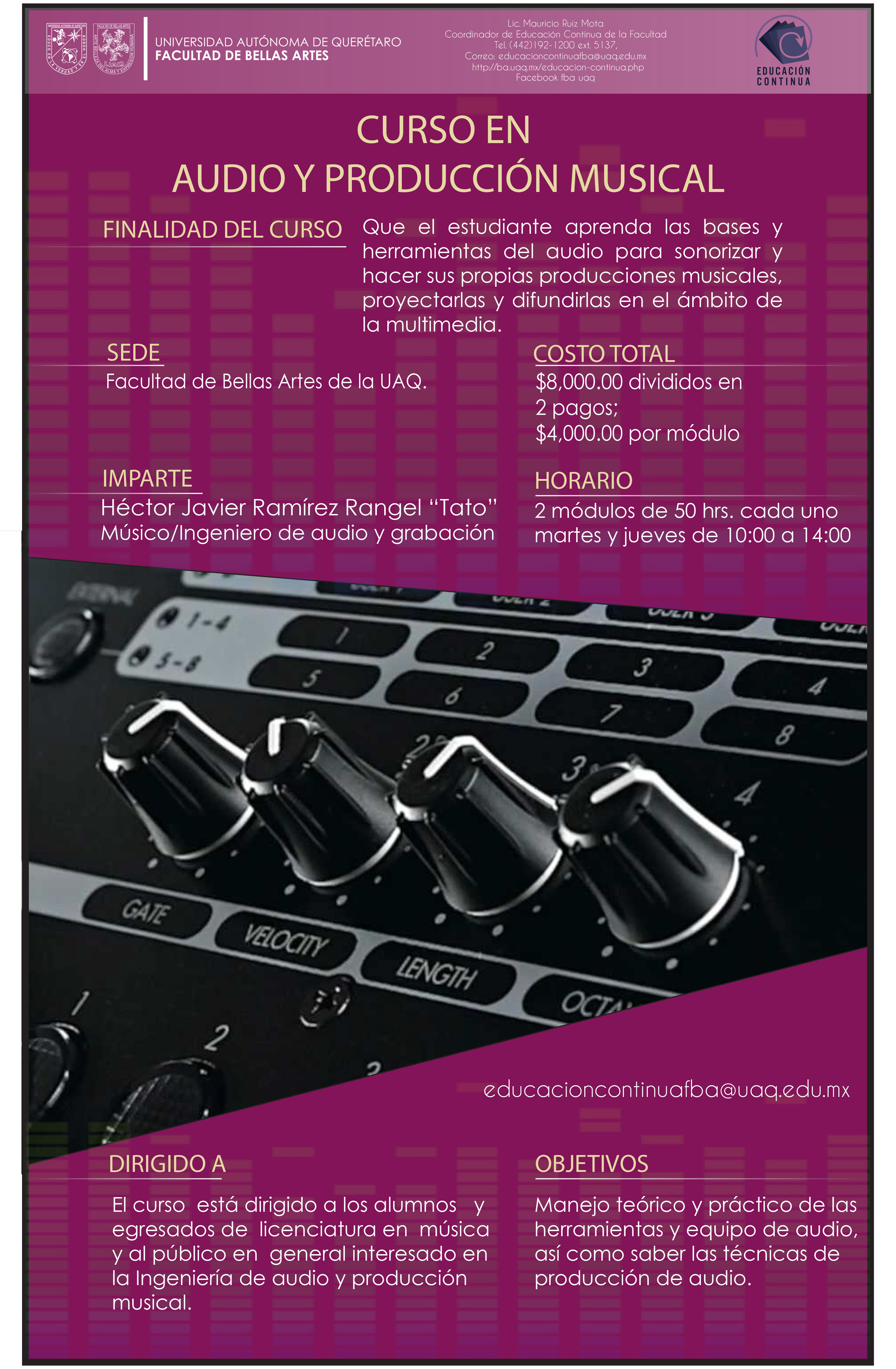 Imparte: Héctor Javier Ramírez "Tata" (músico ingeniero de audio y grabación), “Curso en audio y producción musical,” ReDCA-Eventos, consulta 10 de marzo de 2026, http://redca.uaq.mx/eventos/items/show/63.