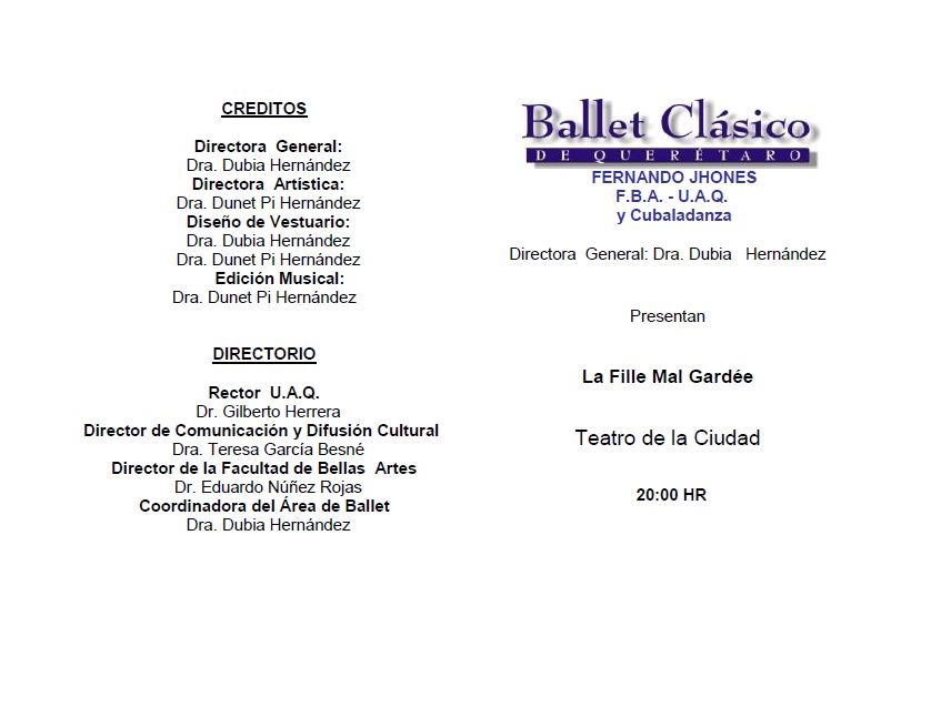Dr. Dubia Hernández, “La Fille Mal Gardée,” ReDCA-Eventos, consulta 10 de marzo de 2026, http://redca.uaq.mx/eventos/items/show/65.