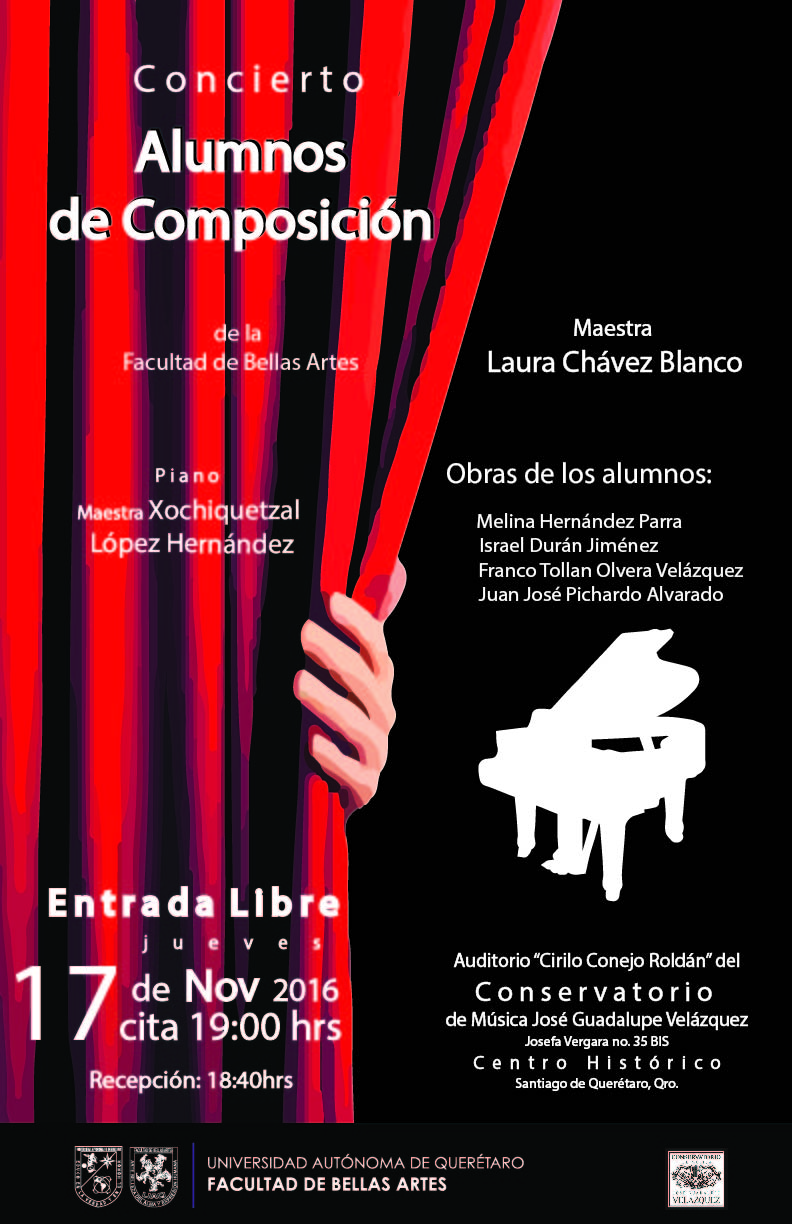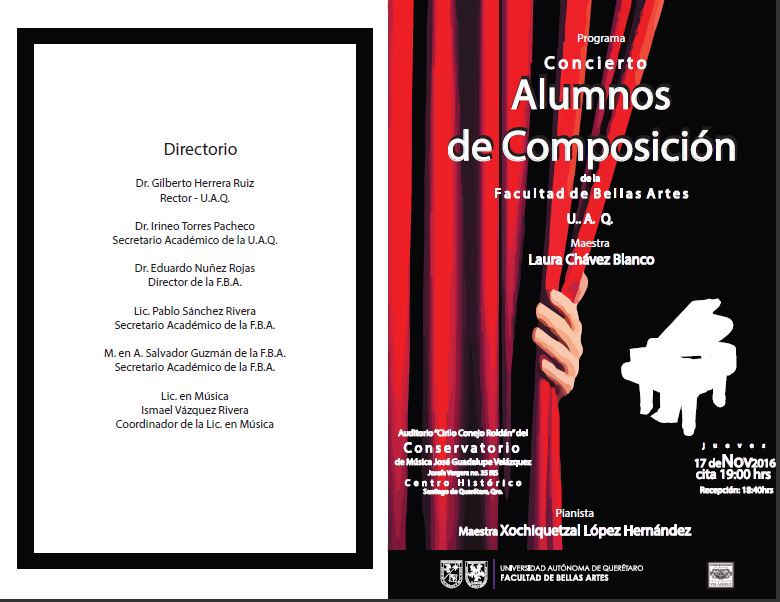 Mtra. Laura Chávez Blanco, “Concierto Alumnos de Composición,” ReDCA-Eventos, consulta 10 de marzo de 2026, http://redca.uaq.mx/eventos/items/show/83.
