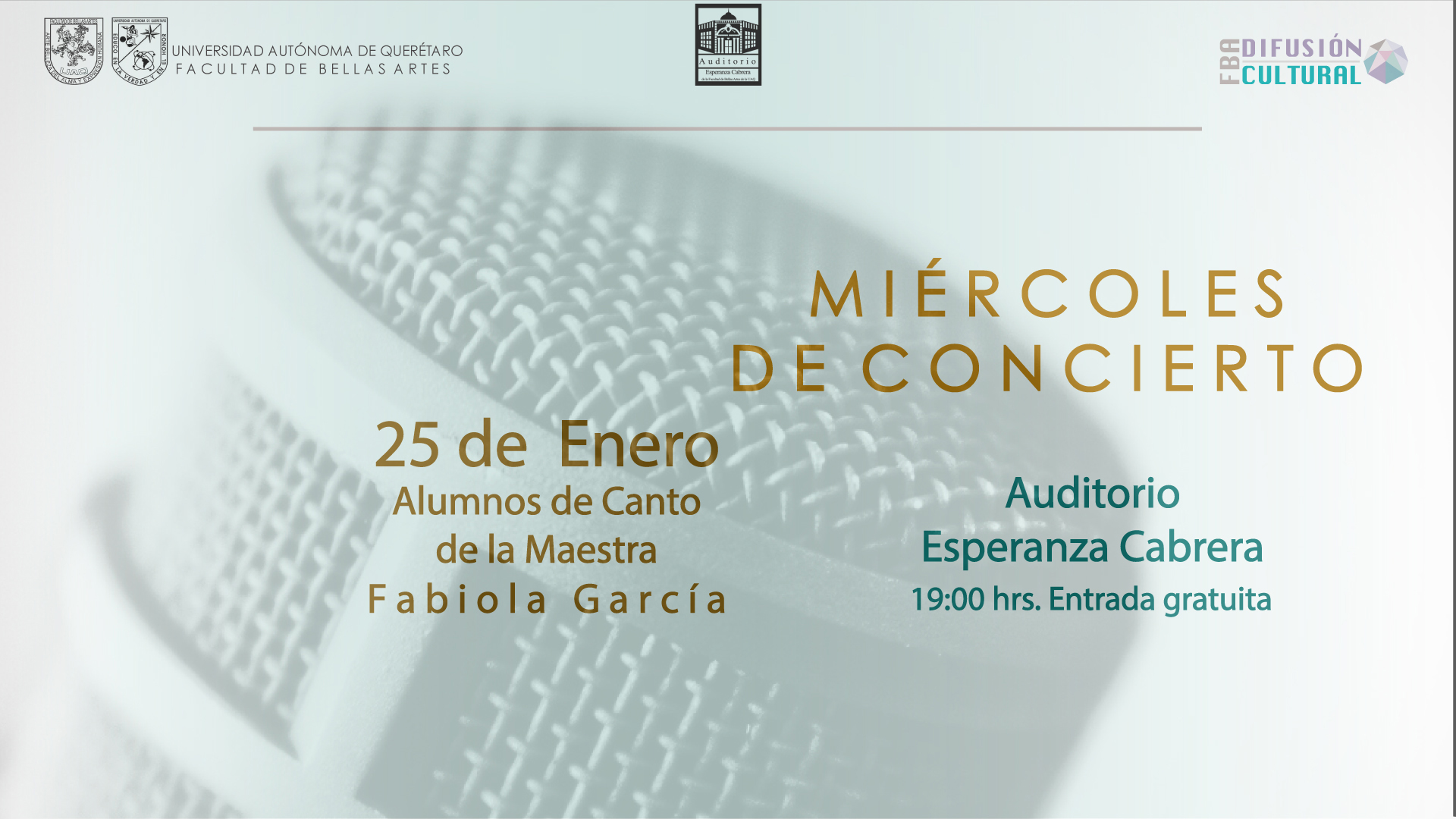 FBA-Auditorio Esperanza Cabrera: 25 de enero, 19:00hrs. Entrada Gratuita