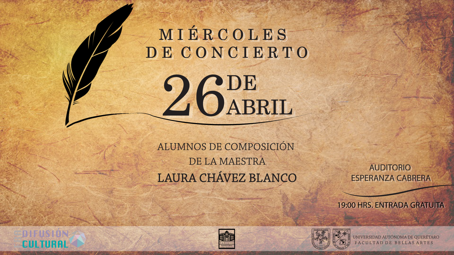 Mtra. Laura Chávez Blanco, “Miércoles de concierto-Alumnos de composición,” ReDCA-Eventos, consulta 10 de marzo de 2026, http://redca.uaq.mx/eventos/items/show/89.