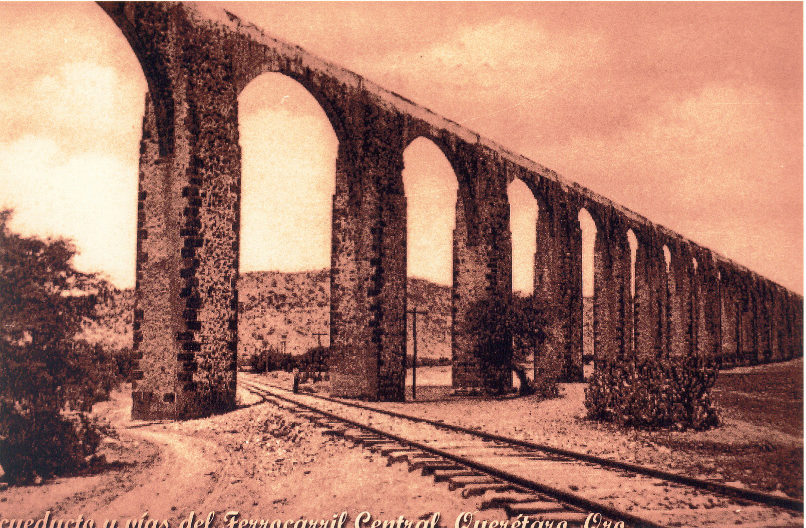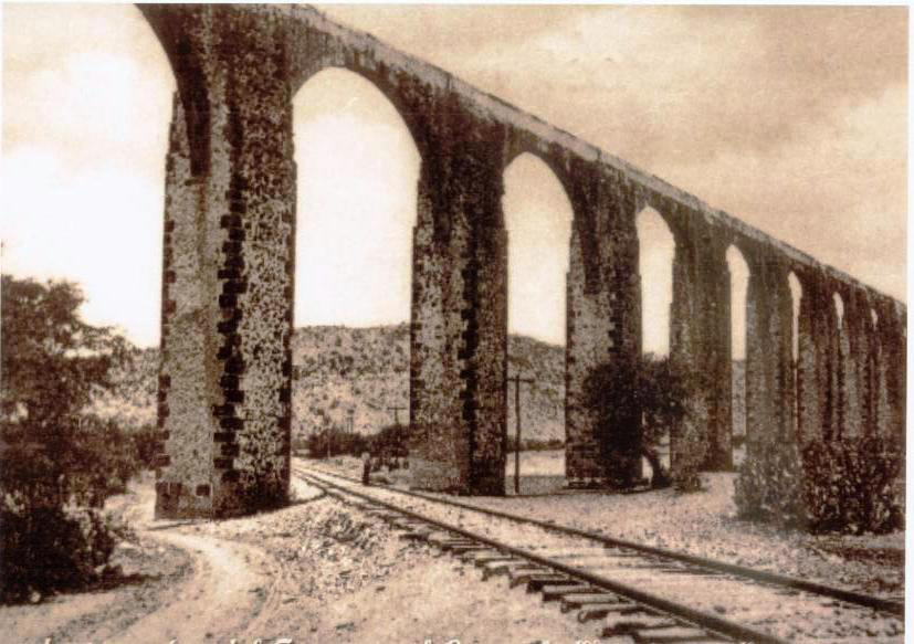 Acueducto y vías del Ferrocarril central de Querétaro cuando era campo.