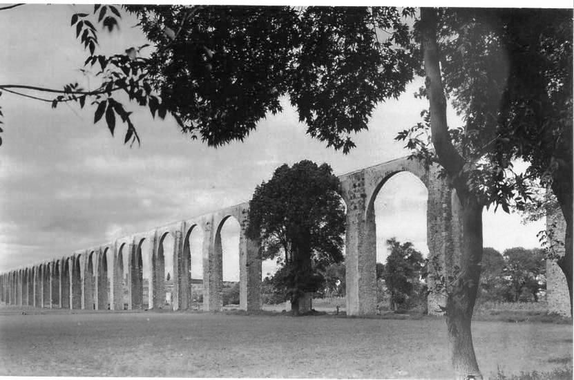 Acueducto y vías del Ferrocarril central de Querétaro cuando era campo.