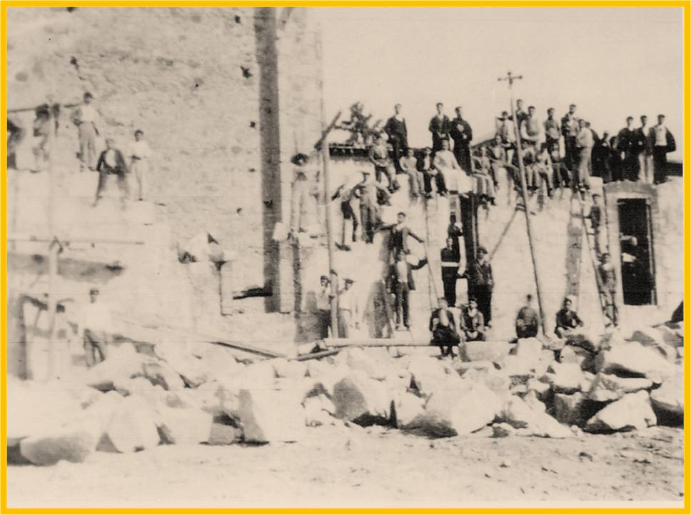 Albañiles posando para la foto, en una construcción