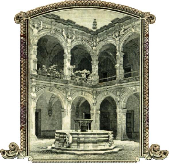 Grabado que se encuentra en un billete, en donde muestra el convento de San Agustín de Querétaro.