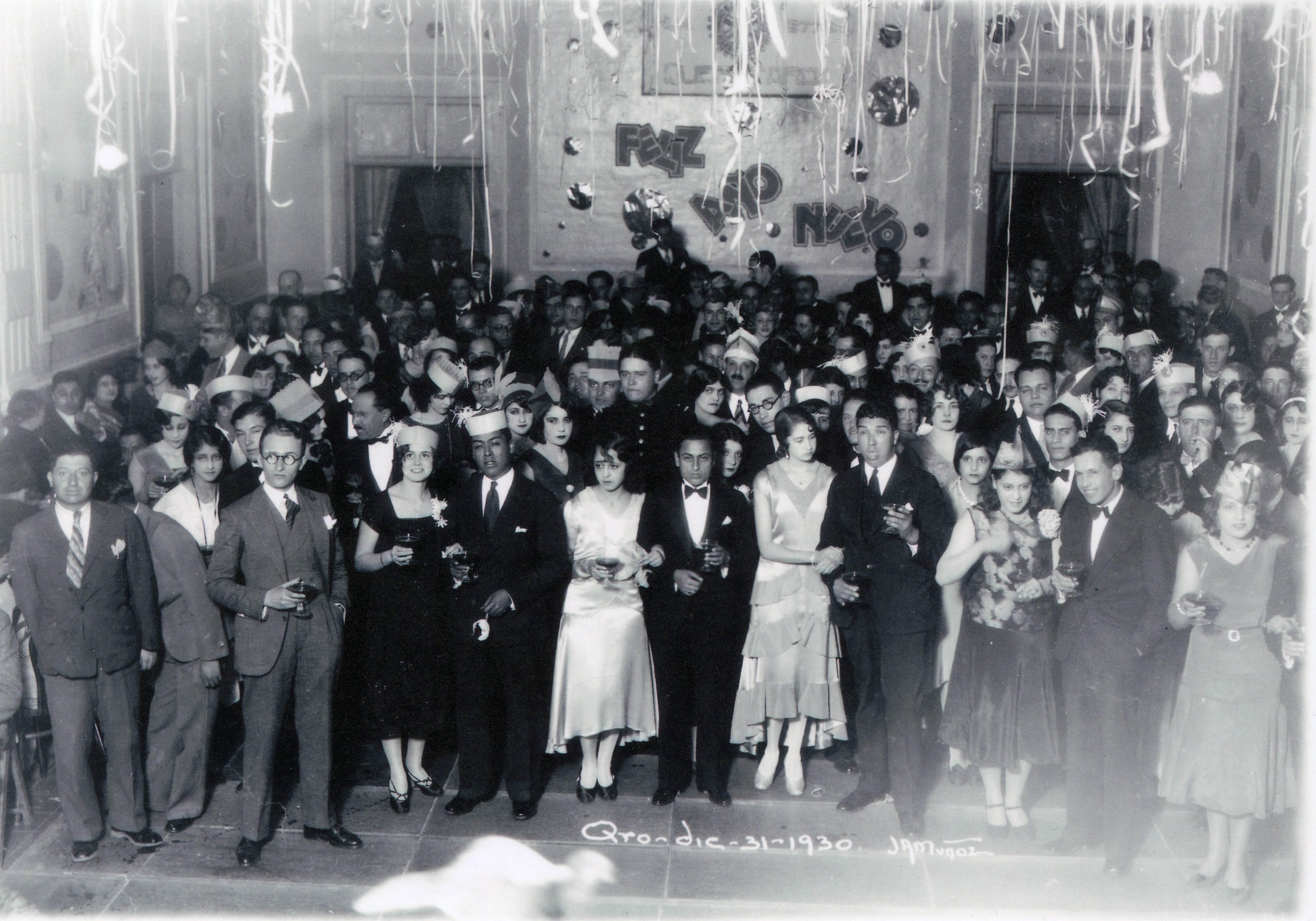 Reunión de personas para celebrar año nuevo, dentro de un salón.