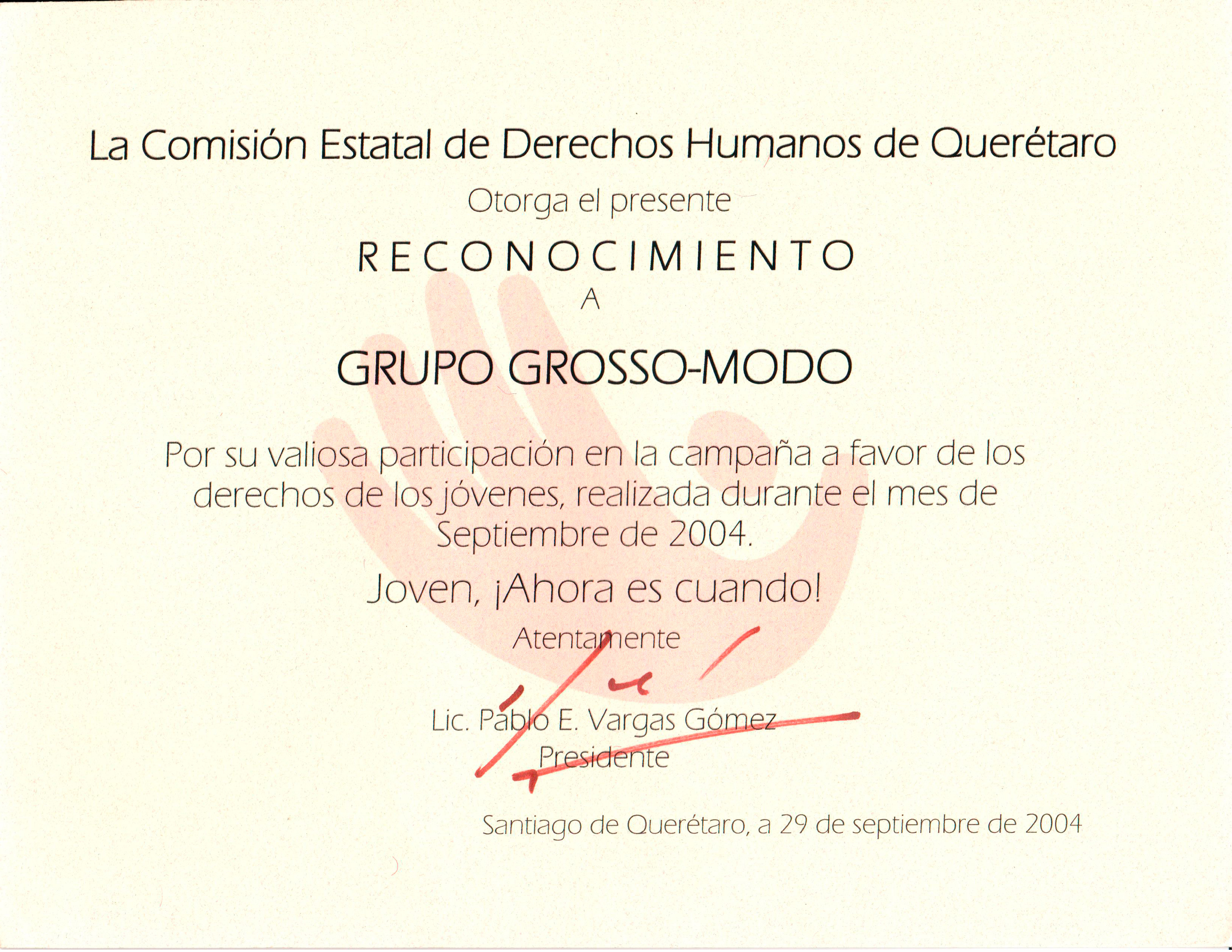 Grosso Modo, “Participación en la campaña a favor de los derechos de los jóvenes,” ReDCA-Grosso Modo, consulta 9 de marzo de 2026, http://redca.uaq.mx/grosso-modo/items/show/117.