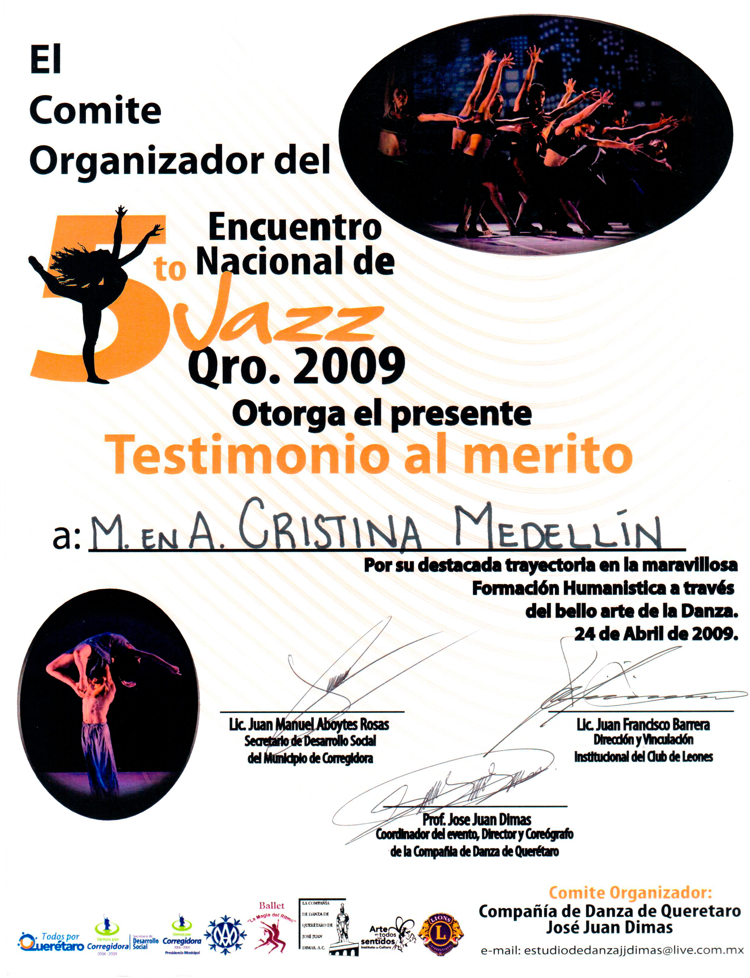 Cristina Medellín, “Testimonio al mérito por trayectoria en Formación Humanística a través de la danza,” ReDCA-Grosso Modo, consulta 9 de marzo de 2026, http://redca.uaq.mx/grosso-modo/items/show/132.