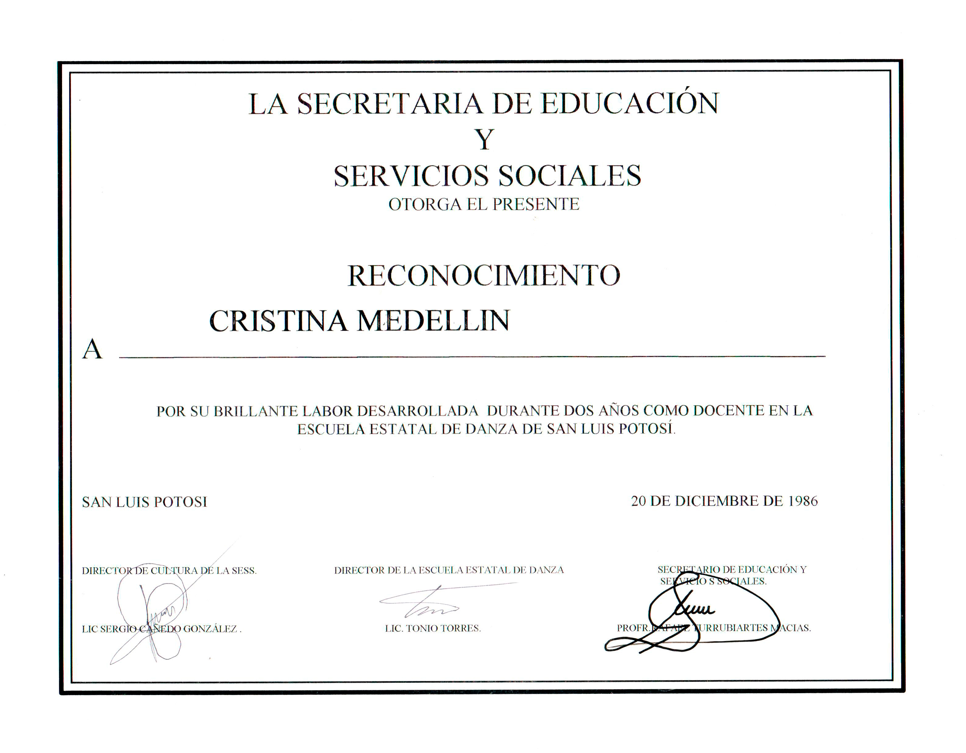 Cristina Medellín, “Desarrollo laboral como docente en la Escuela Estatal de Danza de San Luis Potosí,” ReDCA-Grosso Modo, consulta 9 de marzo de 2026, http://redca.uaq.mx/grosso-modo/items/show/133.
