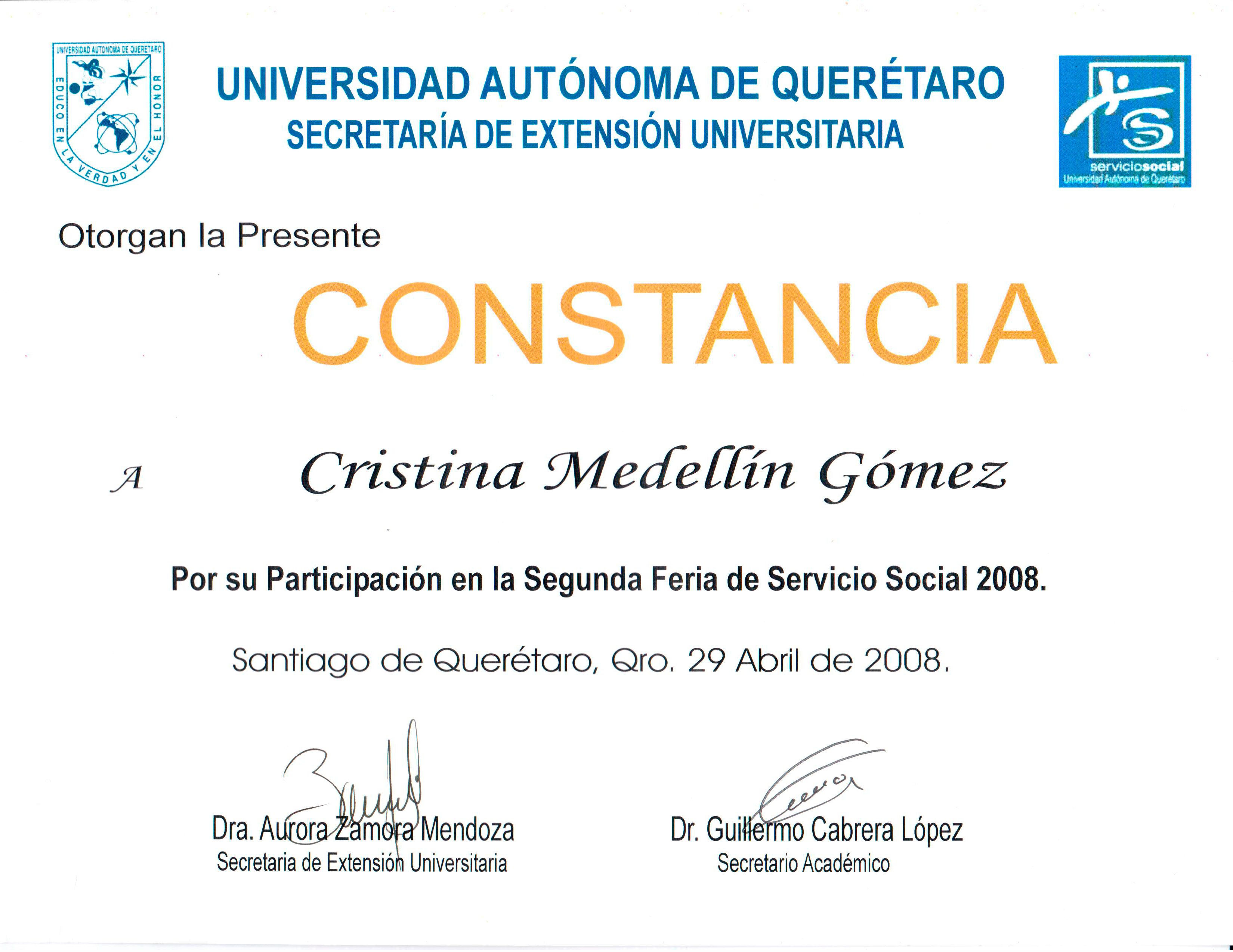 Cristina Medellín, “Participación en la Segunda Feria de Servicio Social,” ReDCA-Grosso Modo, consulta 9 de marzo de 2026, http://redca.uaq.mx/grosso-modo/items/show/173.