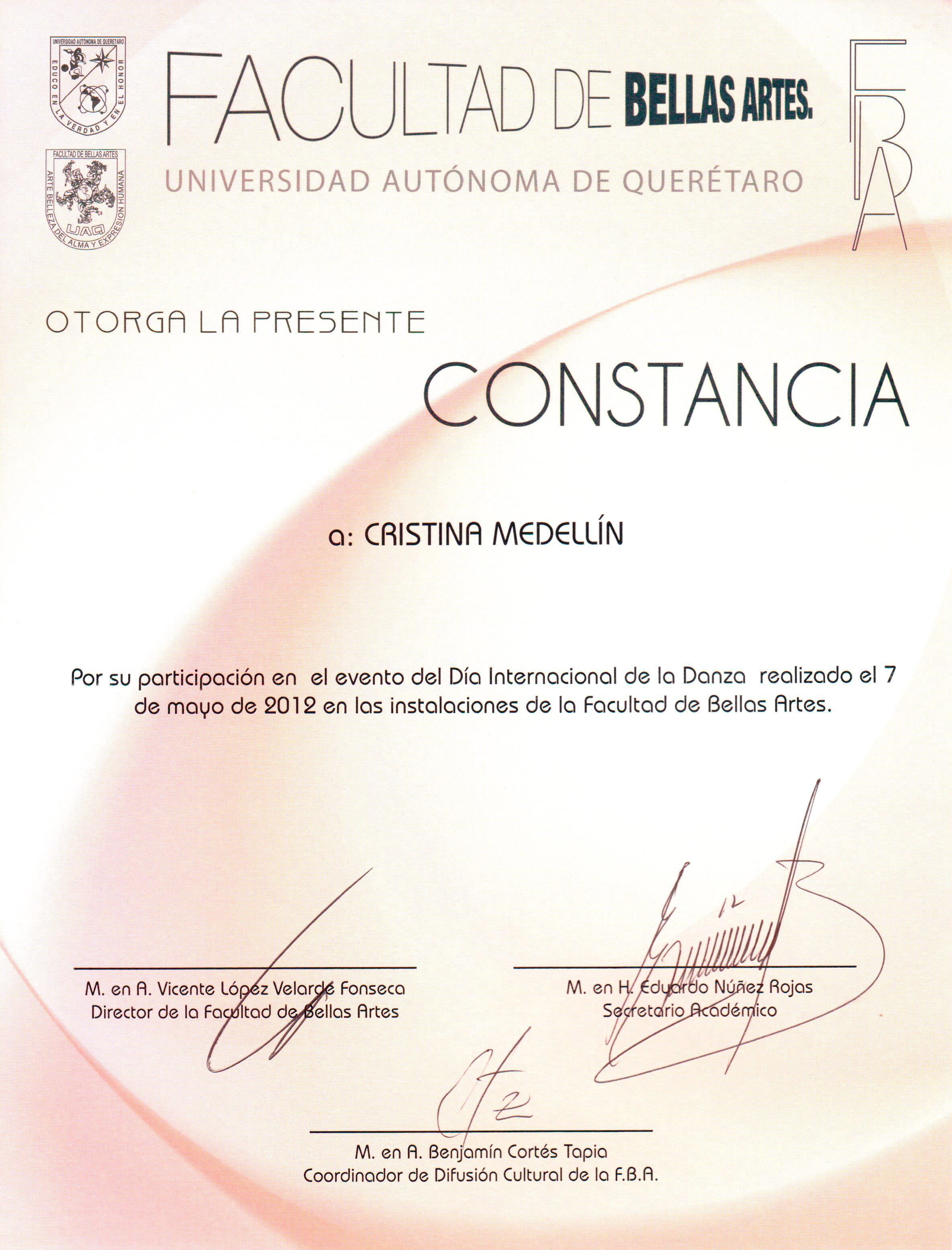 Cristina Medellín, “Participación en el Día Internacional de la Danza,” ReDCA-Grosso Modo, consulta 9 de marzo de 2026, http://redca.uaq.mx/grosso-modo/items/show/182.