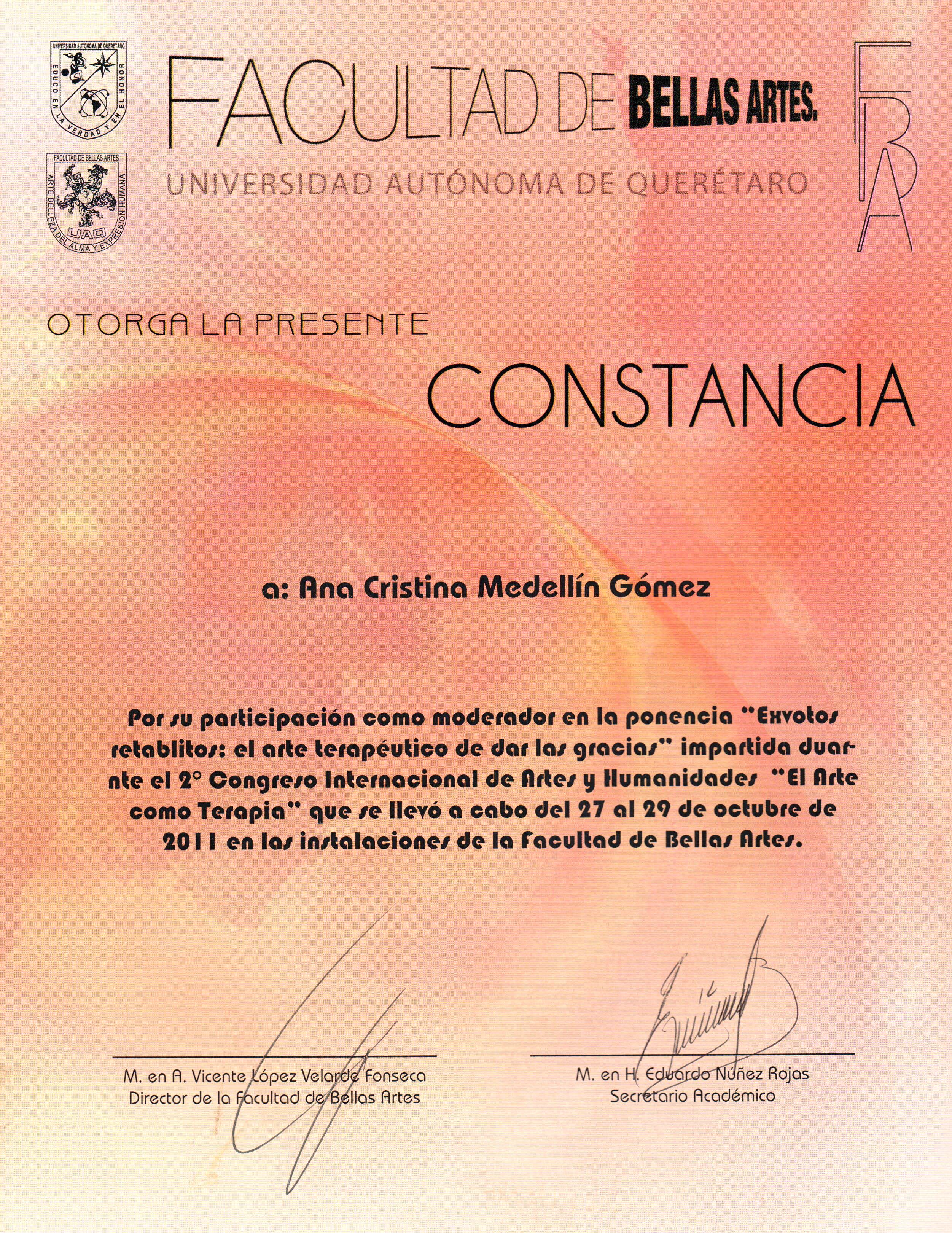 27 al 29 de Octubre de 2011/Facultad de Bellas Artes, UAQ; Santiago de Querétaro, Querétaro