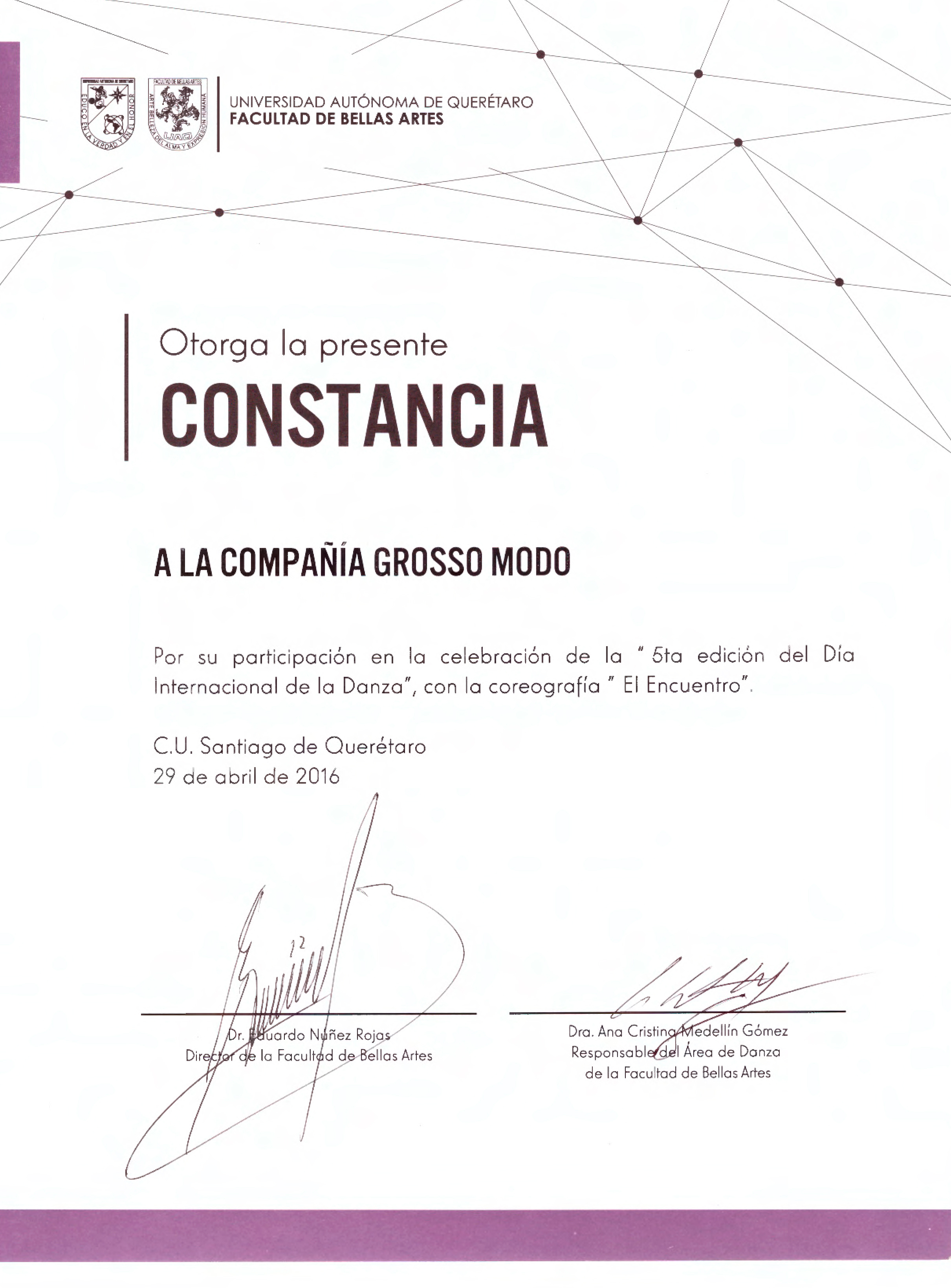 Grosso Modo, “Participación en la 5° edición del Día Internacional de la Danza,” ReDCA-Grosso Modo, consulta 9 de marzo de 2026, http://redca.uaq.mx/grosso-modo/items/show/204.
