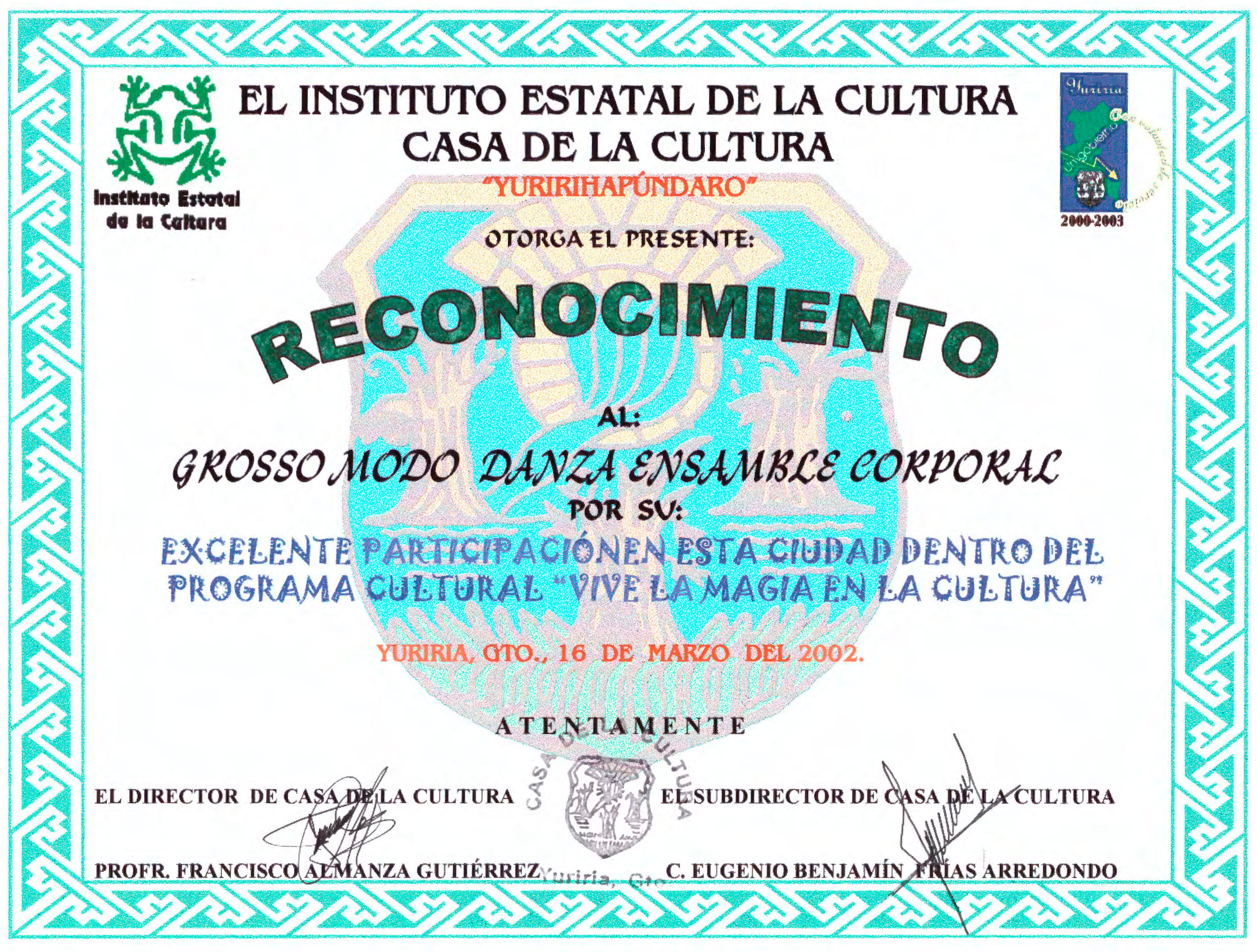 16 Marzo de 2002/Casa de la cultura "Yuririhapúndaro; Yuriria, Gto.