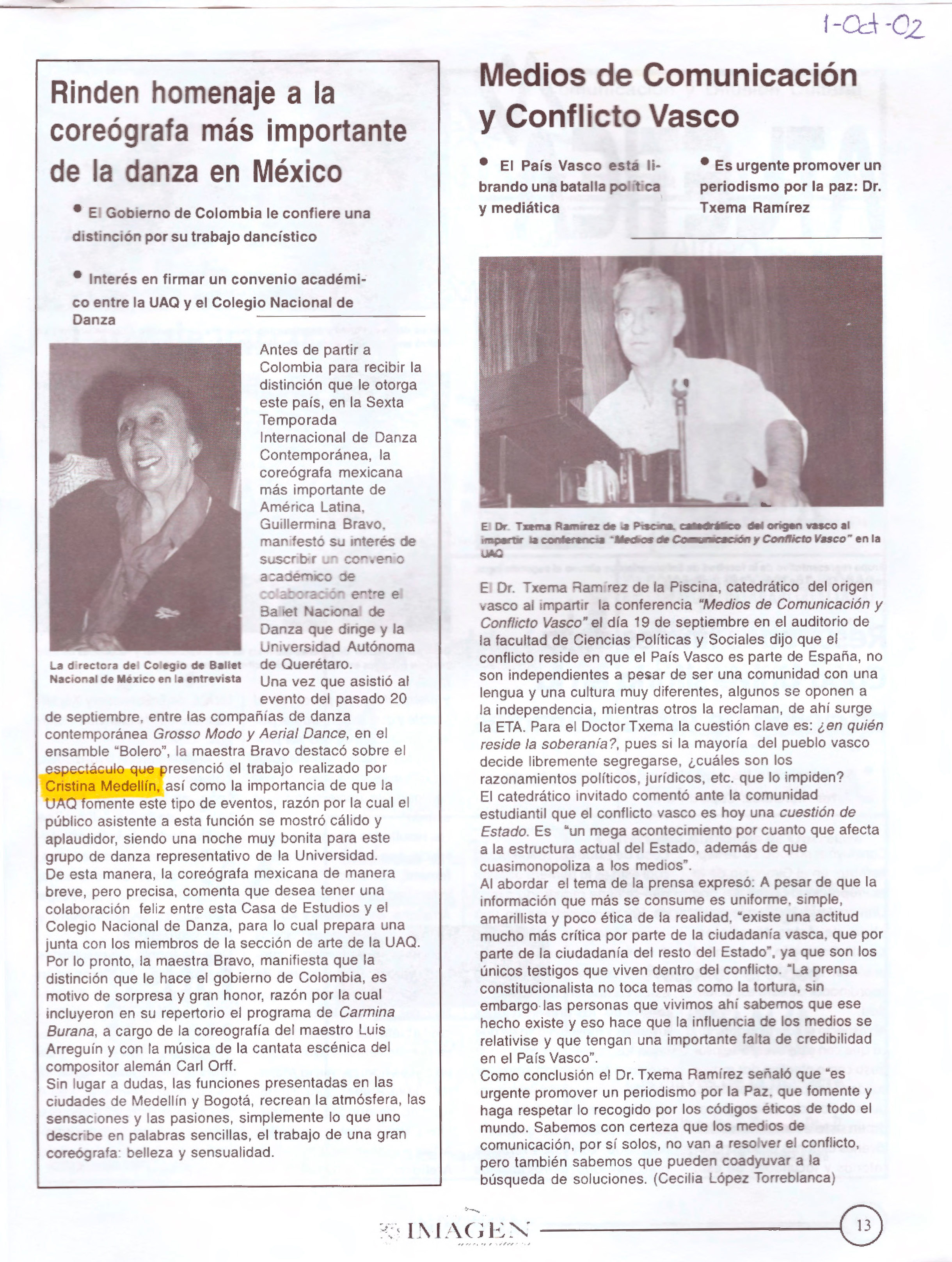 01 de Octubre de 2002/Santiago de Querétaro, Qro.