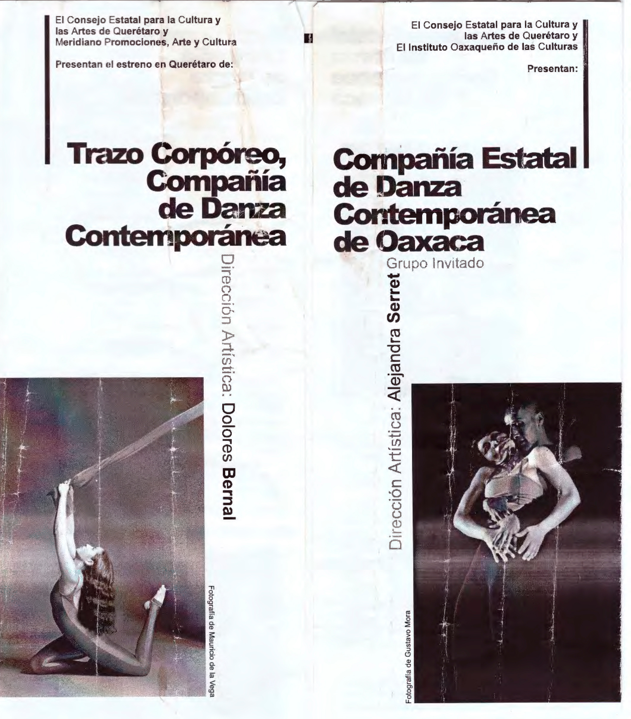 Cristina Medellín, “Presentación Trazo Corpóreo, Compañía de Danza Contemporánea y Compañía Estatal de Danza Contemporánea de Oaxaca,” ReDCA-Grosso Modo, consulta 9 de marzo de 2026, http://redca.uaq.mx/grosso-modo/items/show/260.