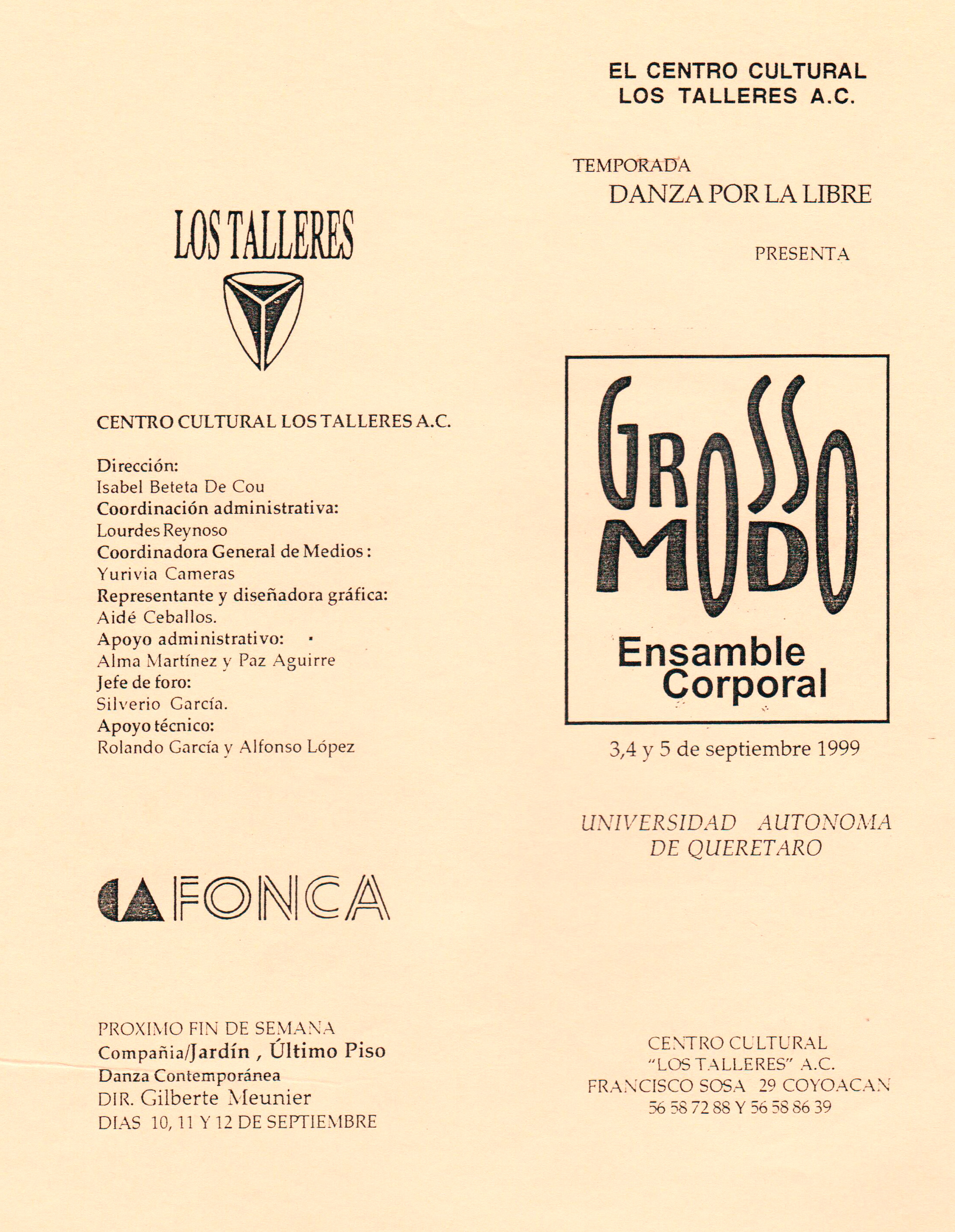 3, 4 y 5 de Septiembre de 1999/Centro Cultural "Los talleres" A.C.; Santiago de Querétaro, Qro.