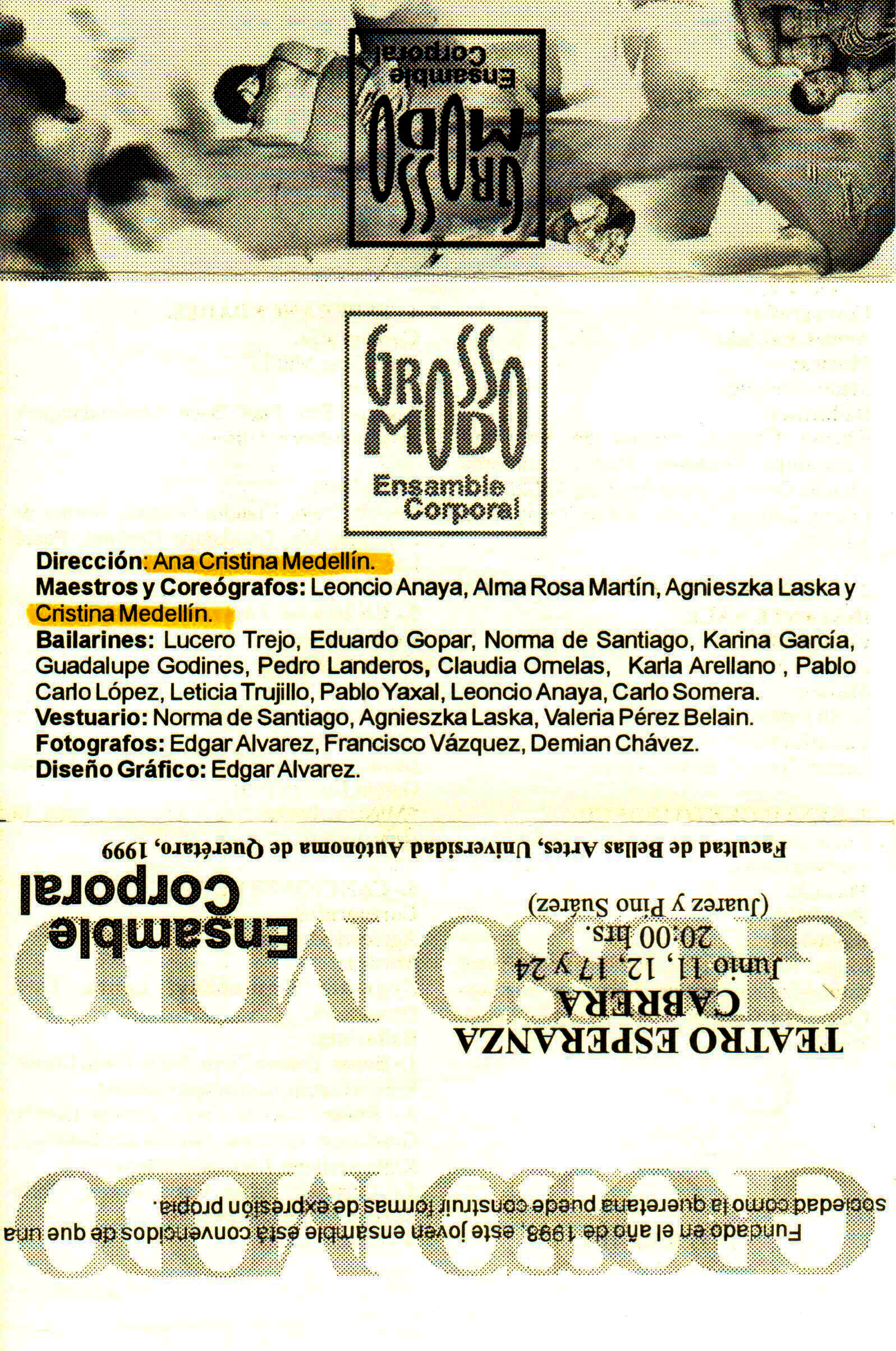 11, 12, 17 y 24 de Junio de 1999/Teatro Esperanza Cabrera, Santiago de Querétaro, Qro.