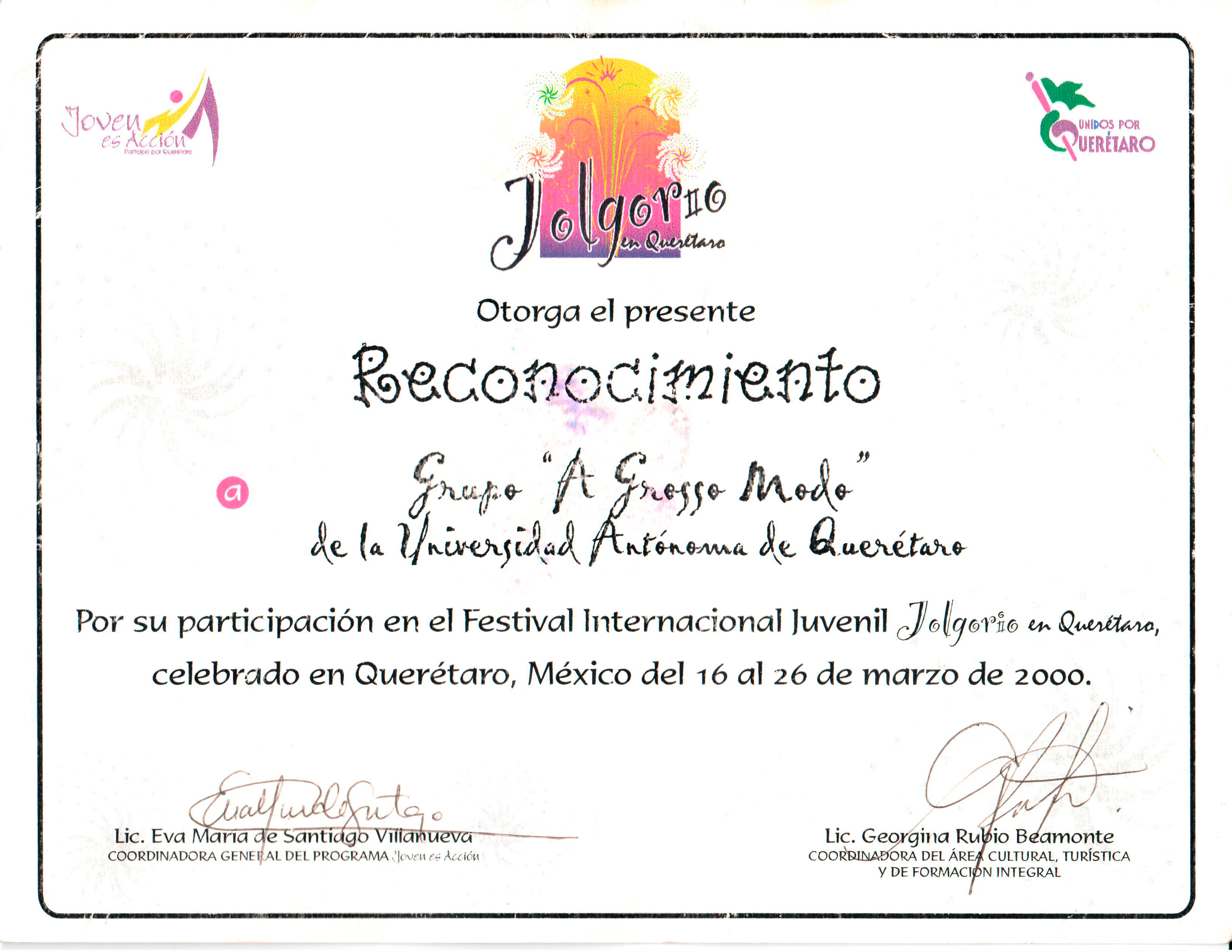 16 al 26 de Marzo de 2000/Santiago de Querétaro, Qro.
