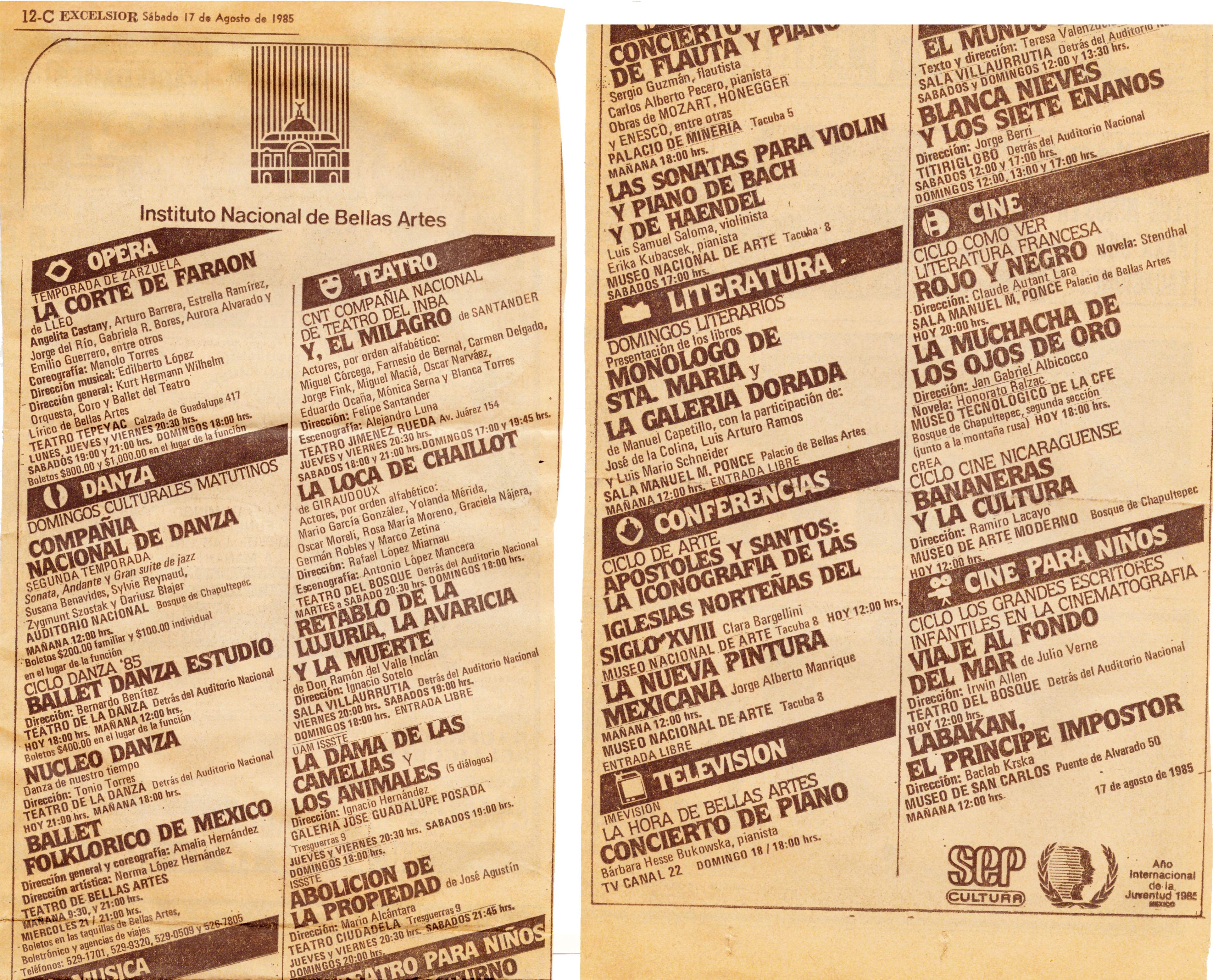 Publicado en Excelsior por parte del Instituto Nacional de Bellas Artes