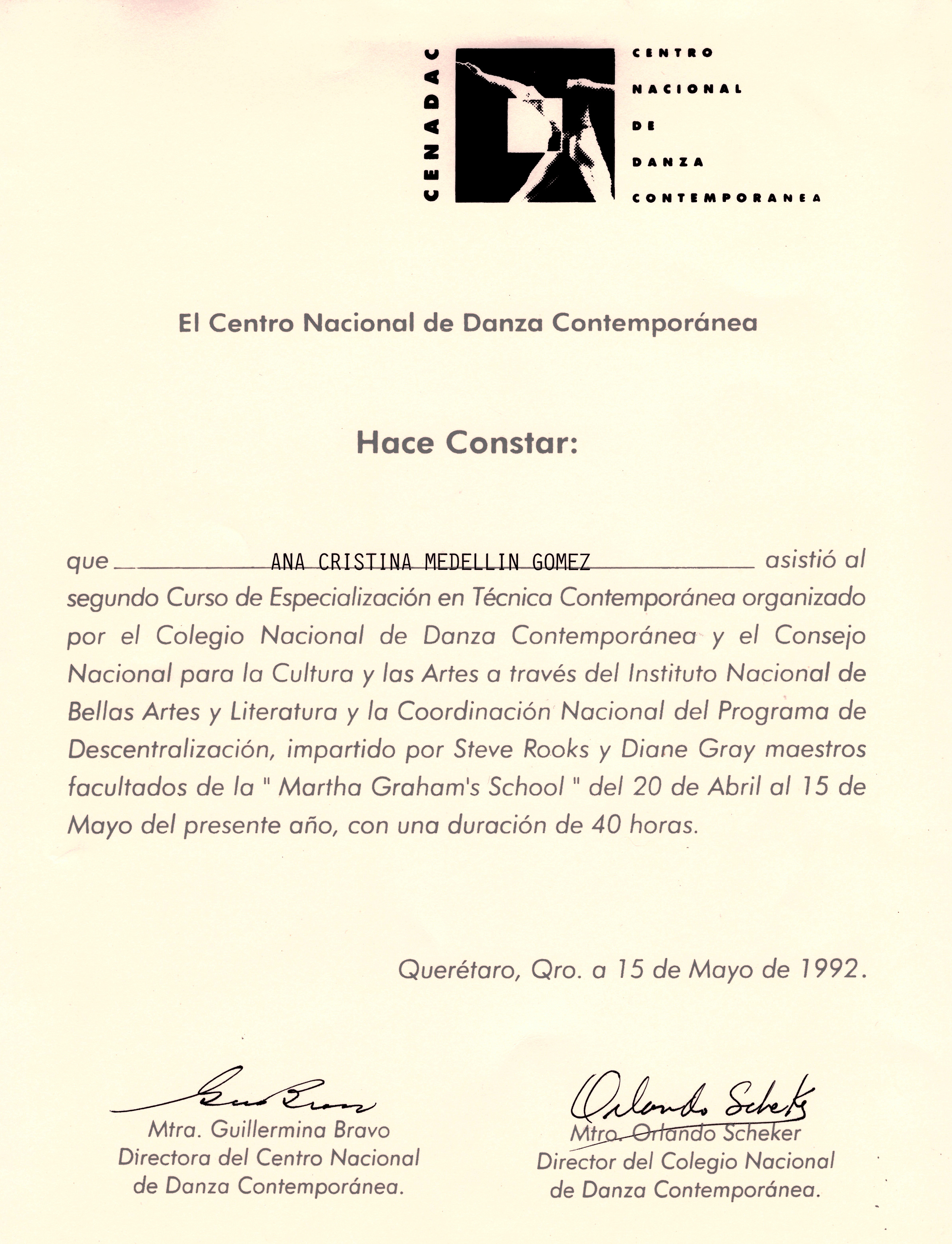 15 de Mayo de 1992/Centro Nacional de Danza Contemporánea; Santiago de Querétaro, Querétaro