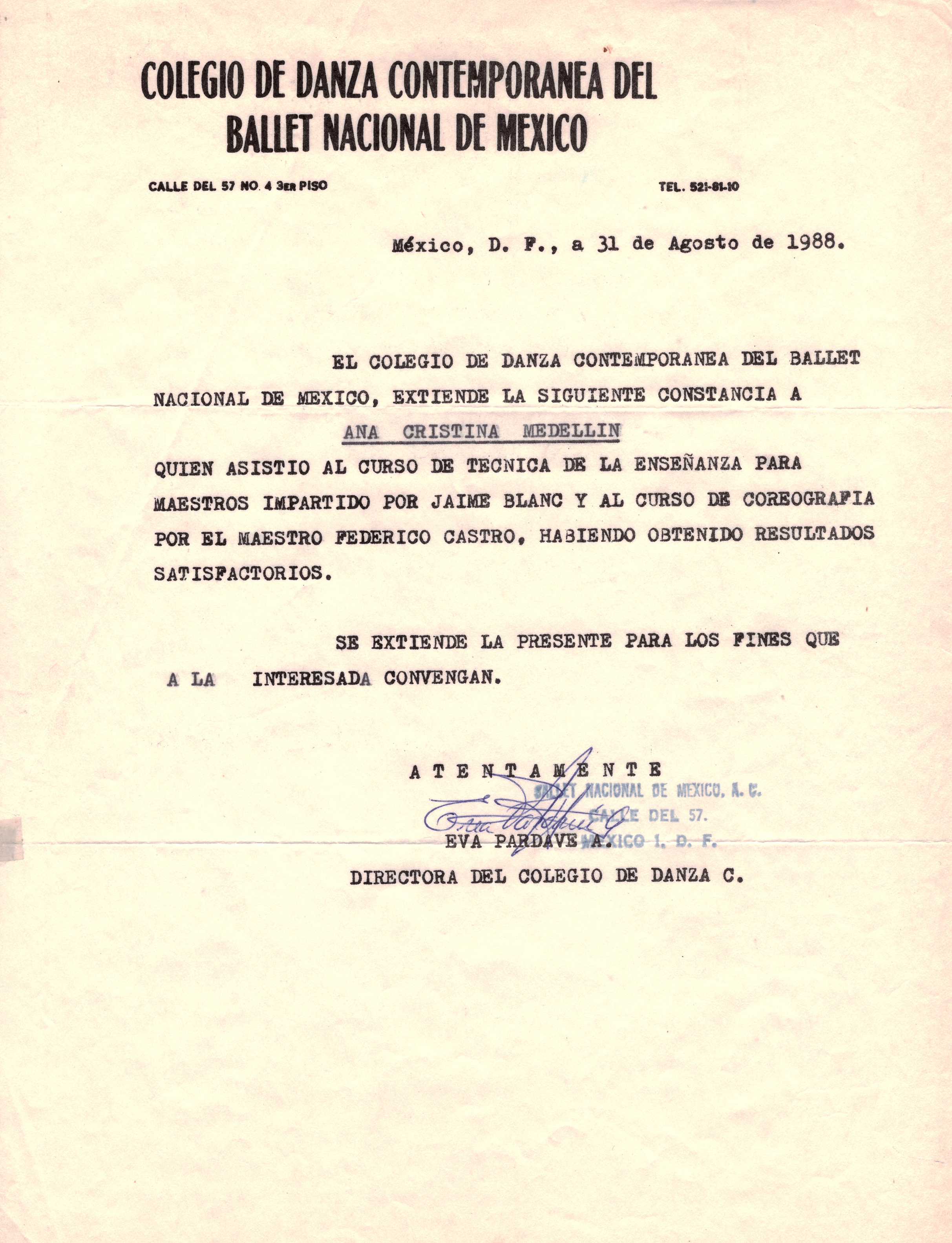 31 de Agosto de 1988/Colegio de Danza Contemporánea del Ballet Nacional de México; Ciudad de México