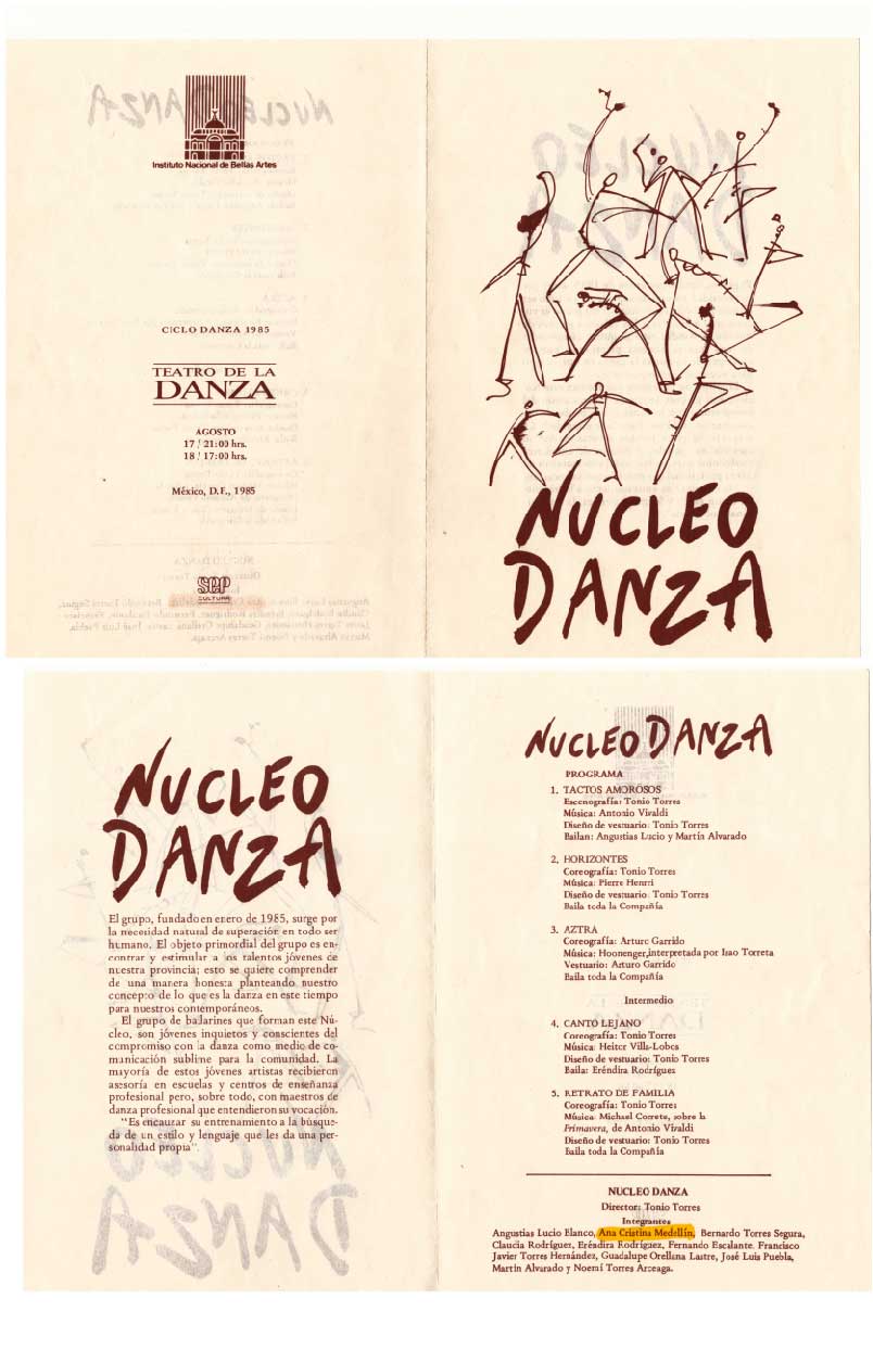 Programa de función en el Instituto Nacional de Bellas Artes del Grupo Núcleo Danza.