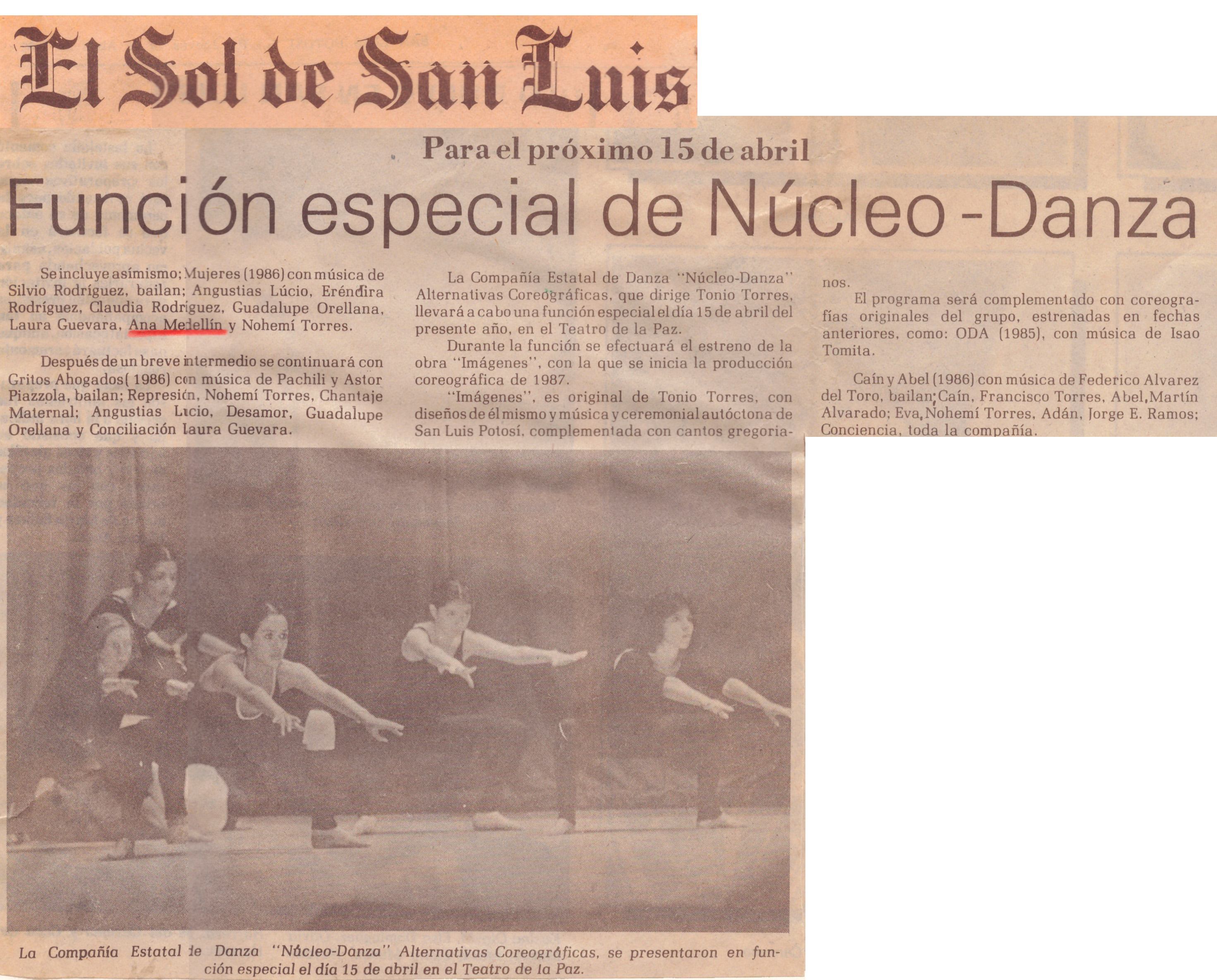Función especial de abril por parte de la Compañía Estatal de Danza "Núcleo-Danza" en el Teatro de la Paz, publicado en el Sol de San Luis