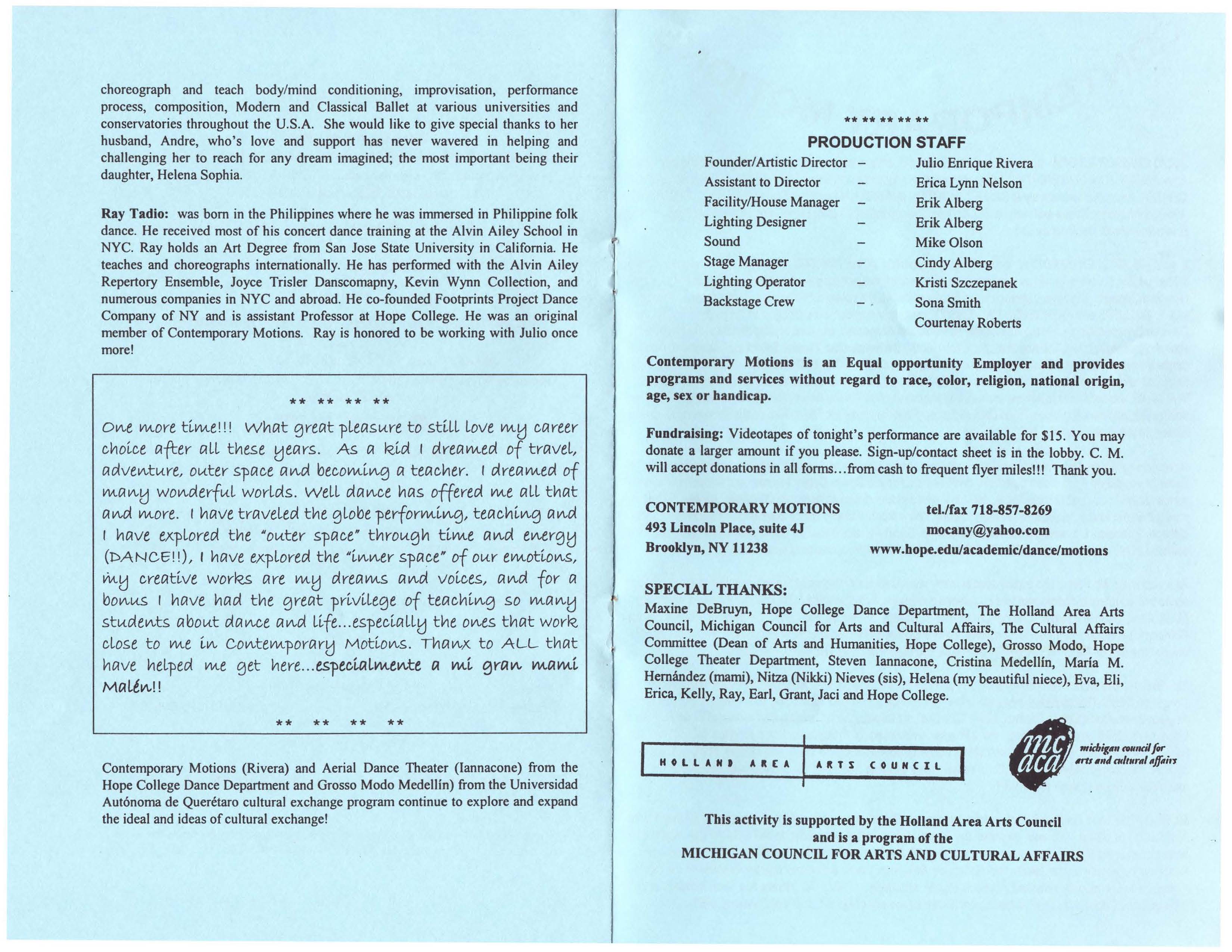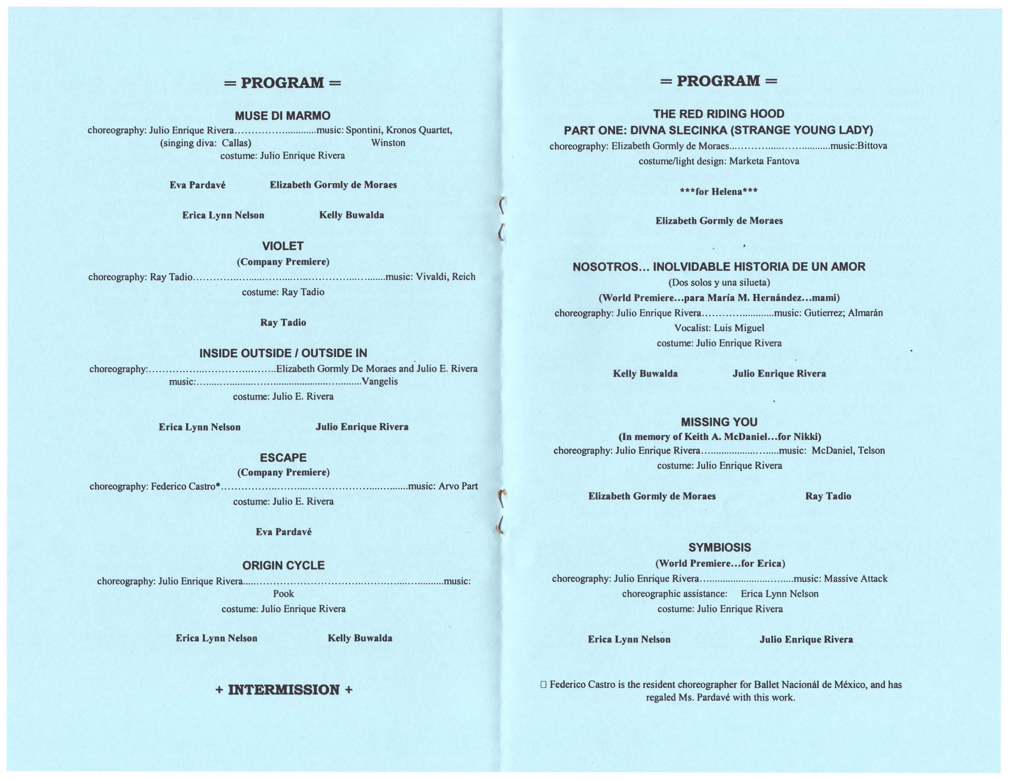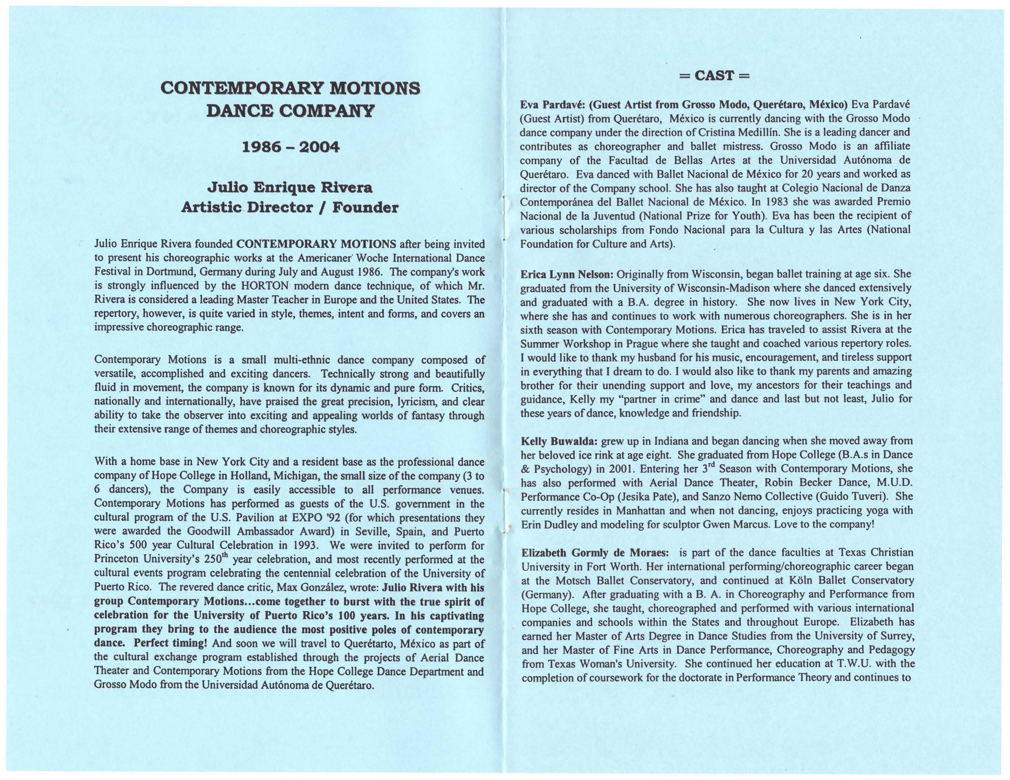 Programa de danza contemporánea en la que participan varios grupos, entre ellos, Grosso Modo Además de tener reseñas de participantes.