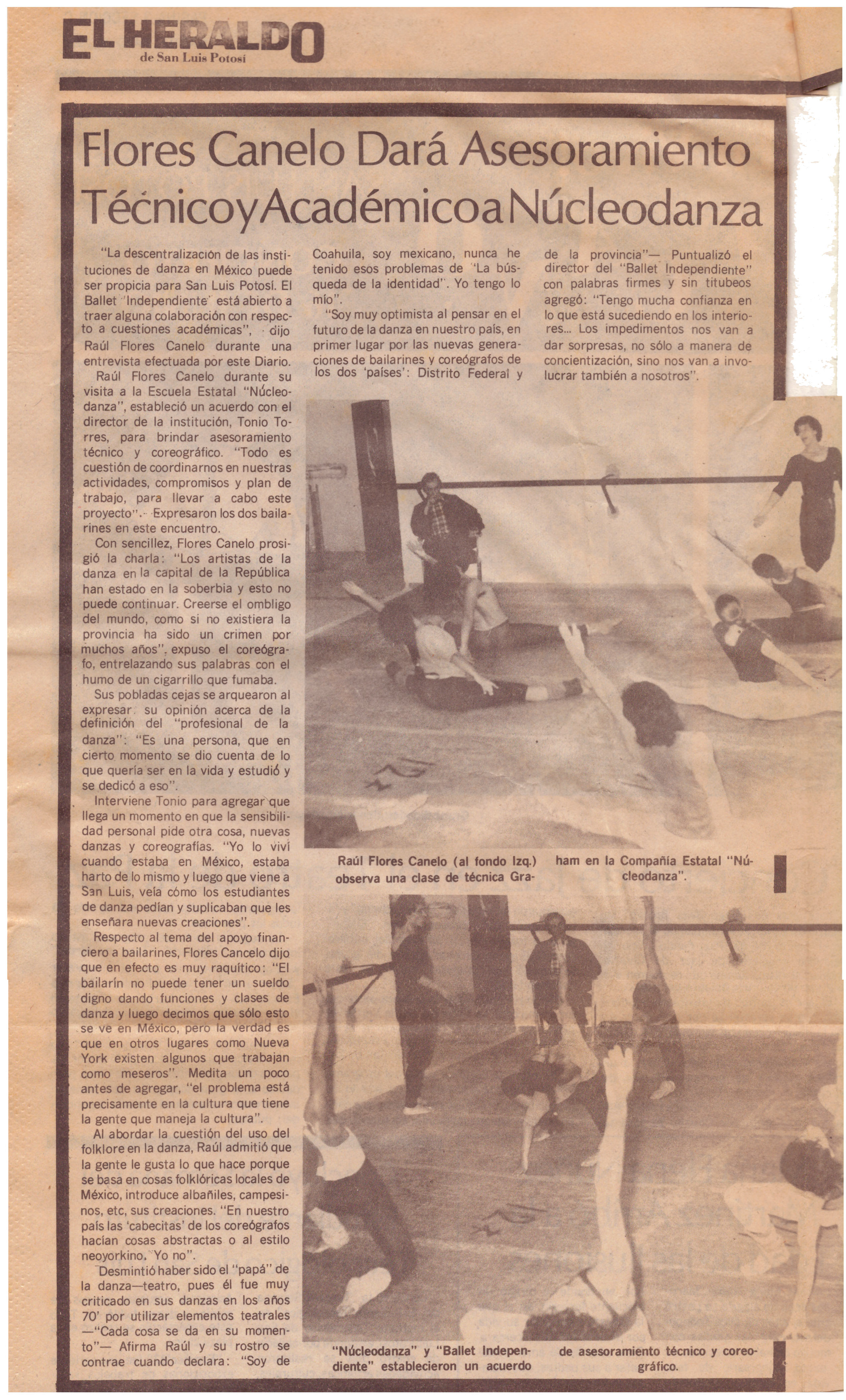Nota Flores Canelo dará Asesoramiento técnico y académico Núcleodanza