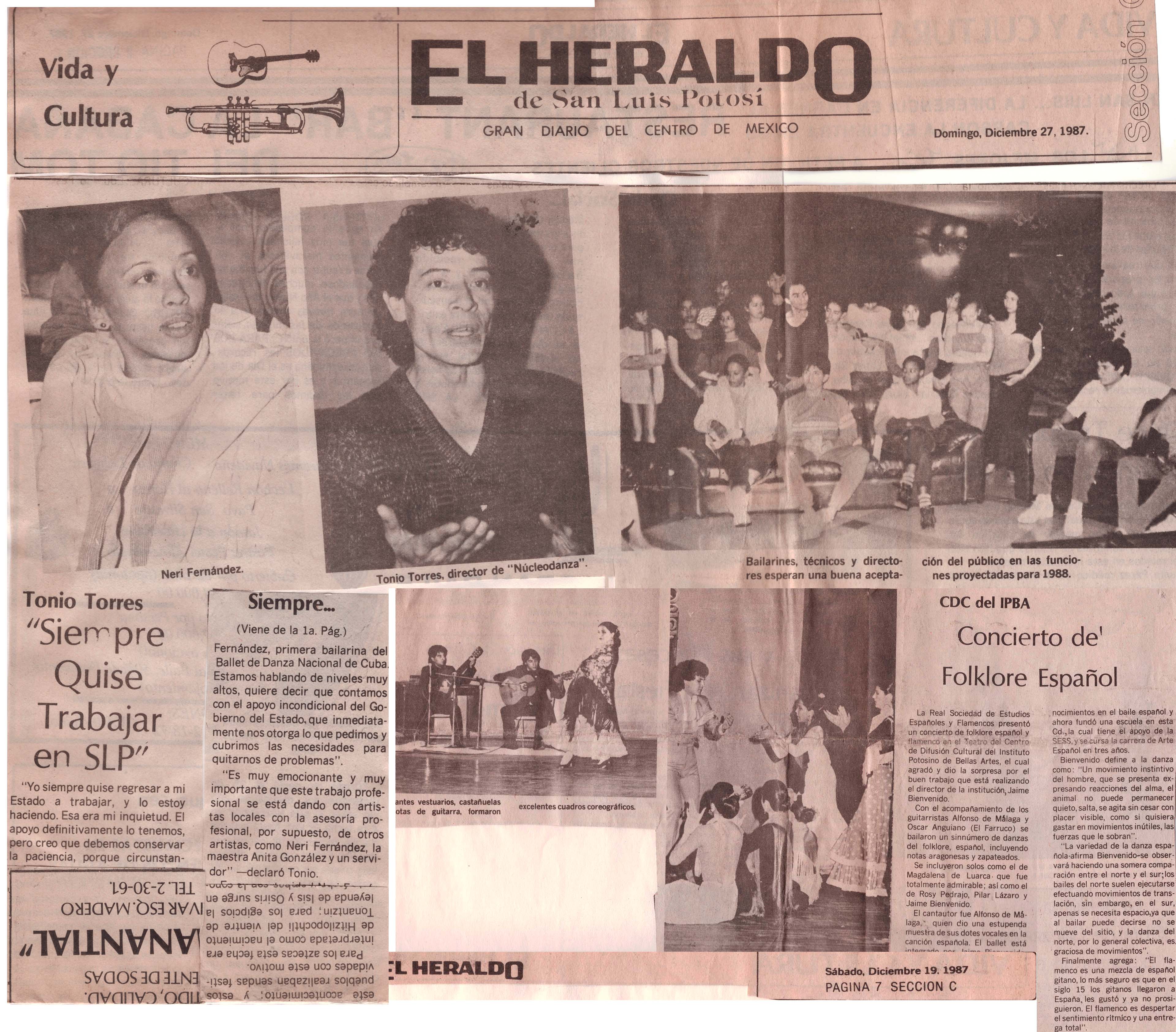 Nota sobre Tonio Torres y su experiencia como director del Ballet, además de la participación con el Floklore en el Teatro del Centro de Difusión Cultural