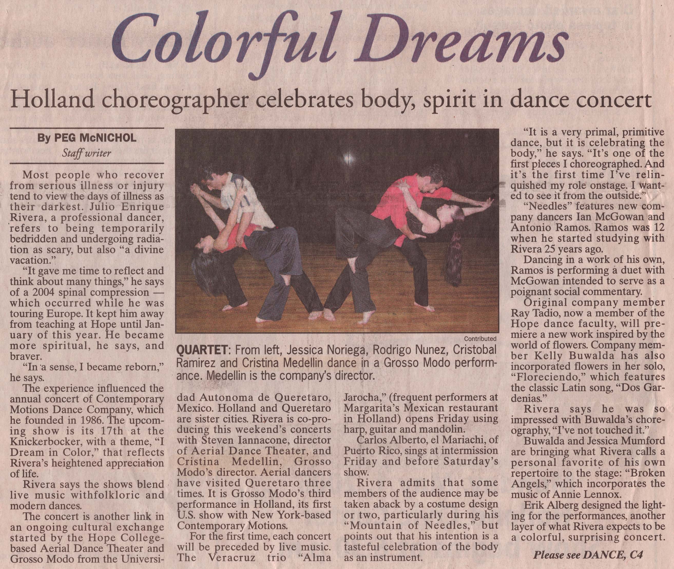 Nota "Colorful Dreams. holland choreopgrapher celebrates body, spirit in dance concert"