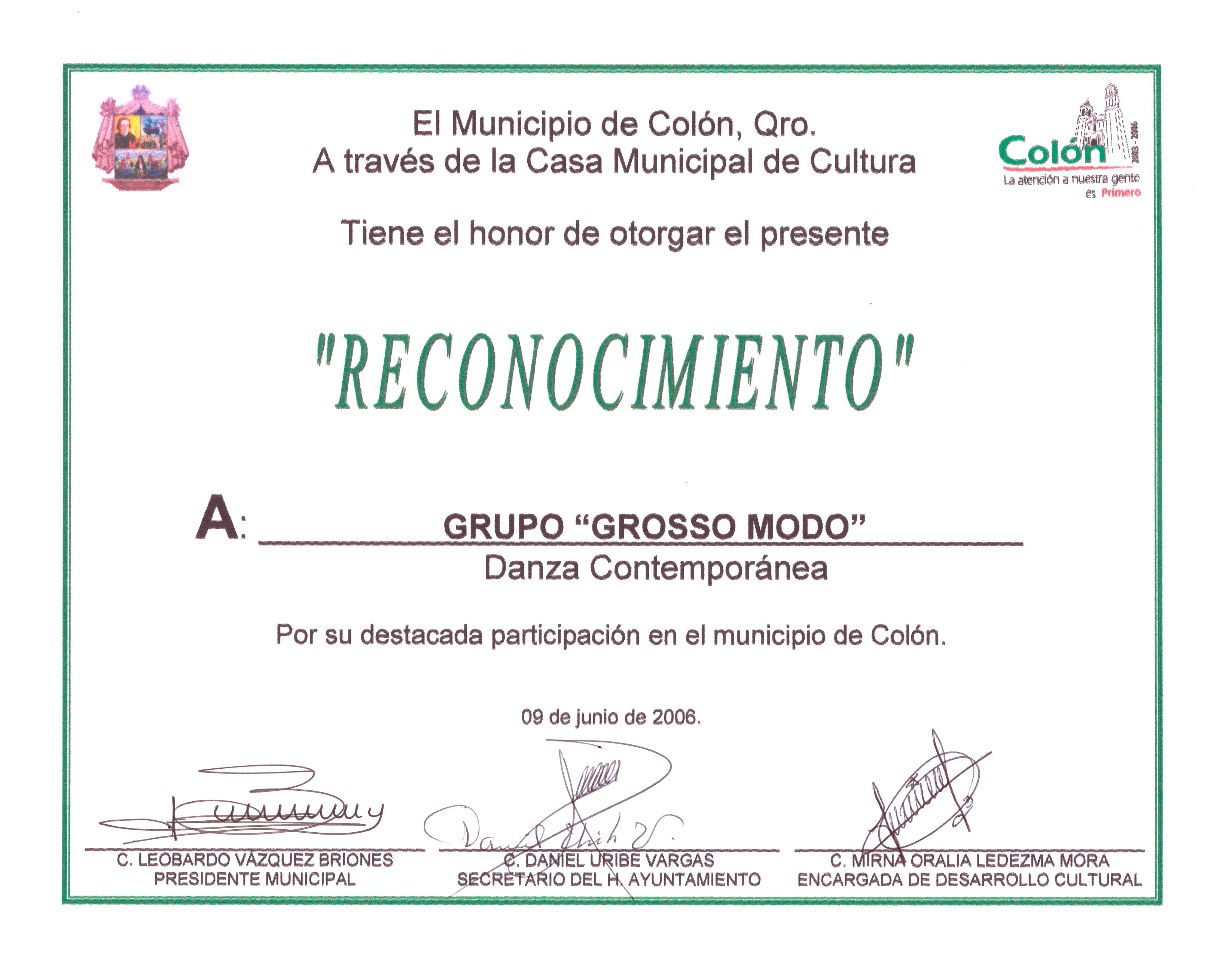 09 de Junio de 2006/Casa Municipal de Cultura; Municipio de Colón, Querétaro