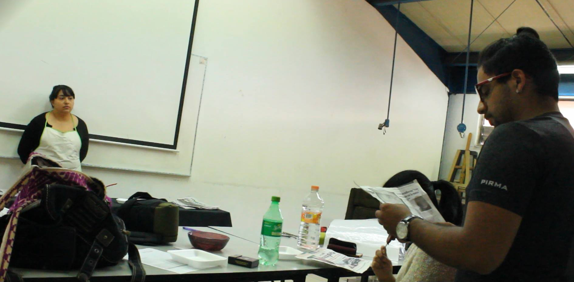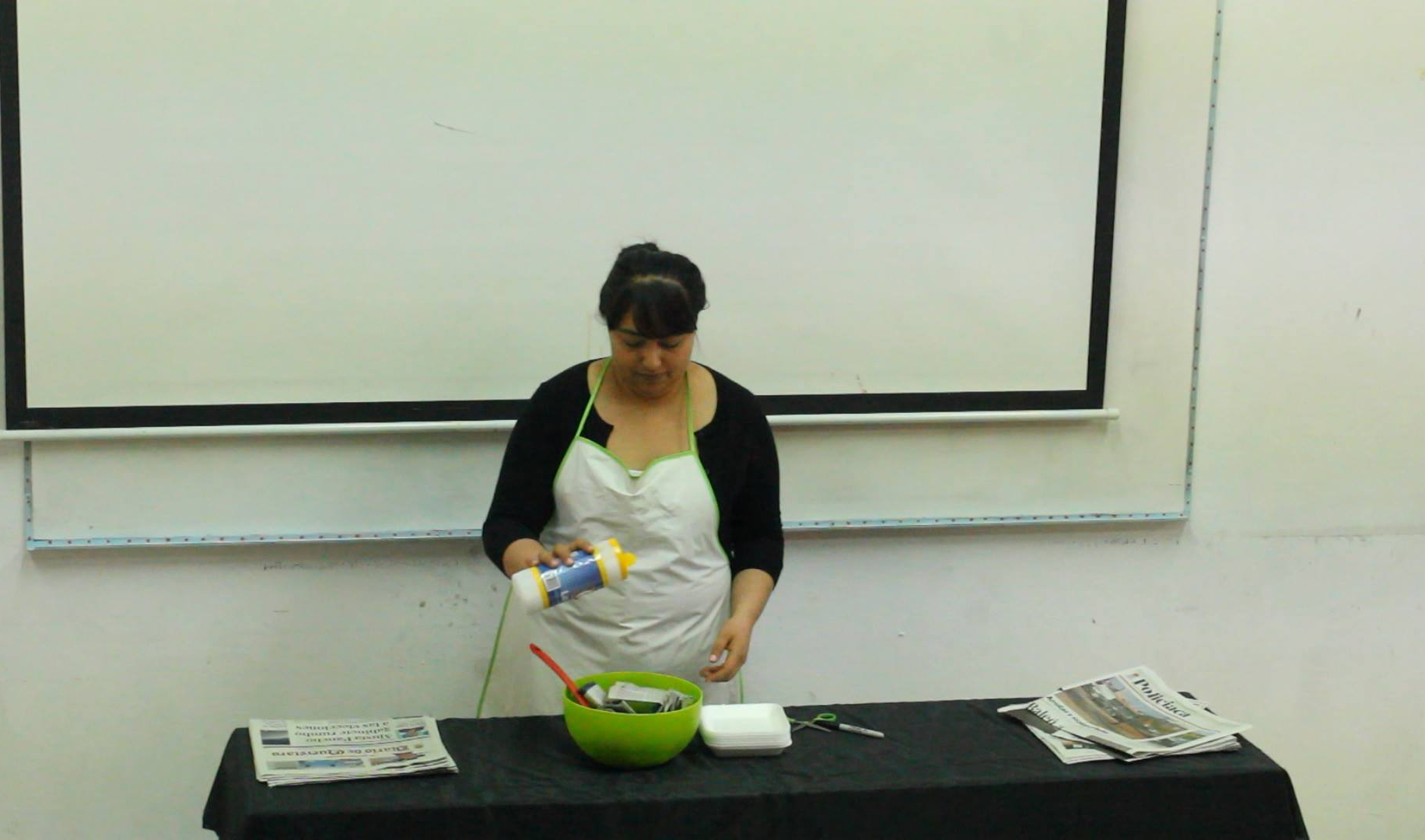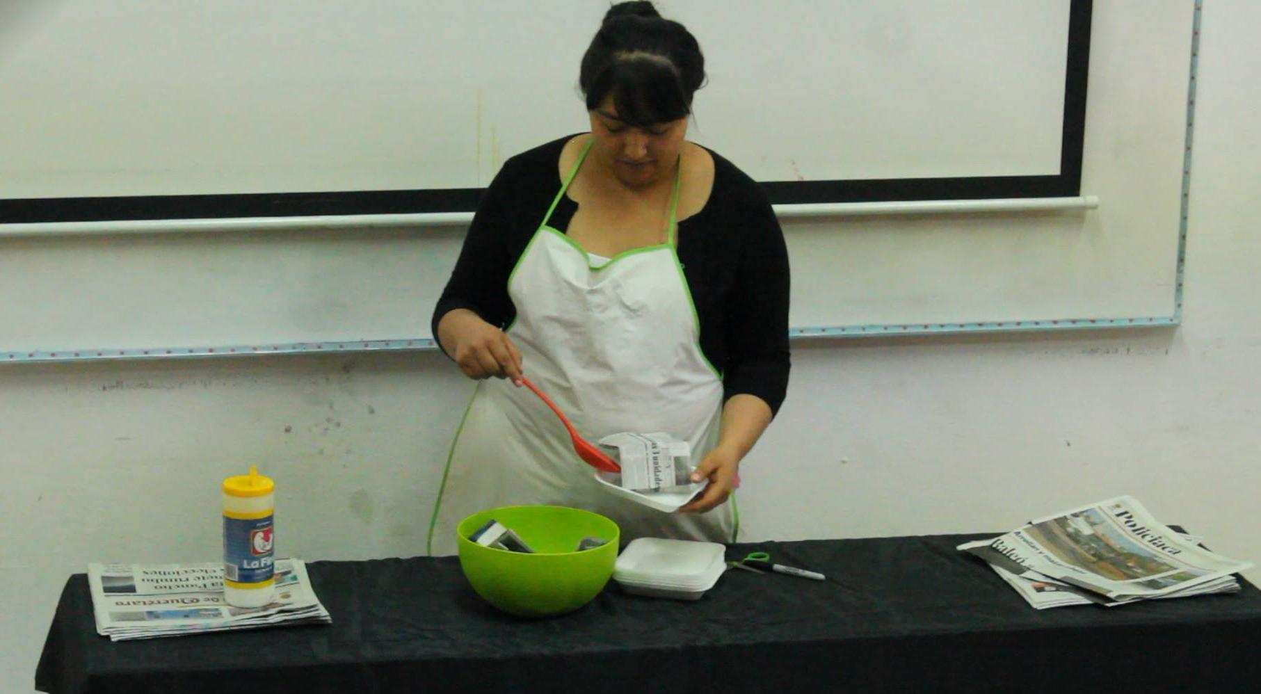 En este performance utilizo el verbo ‘‘Cocinar’’ descontextualizando totalmente, utilizando noticias del periódico del día de hoy, en vez de alimentos, nuestro menú contiene nuestra cotidianidad que esta envuelta de toda clase de noticias las cuales nos tragamos bien a gusto, ya que la violencia se ha vuelto un espectáculo, estamos rodeados de noticias ya sea en el periódico o en Internet, nos hace toser un poco, pero igual nos seguimos atascando, se prepararon las noticias del día sazonadas con sal, a forma de metáfora, por que el arte sensibiliza volviéndose ‘‘La sal del mundo’’.