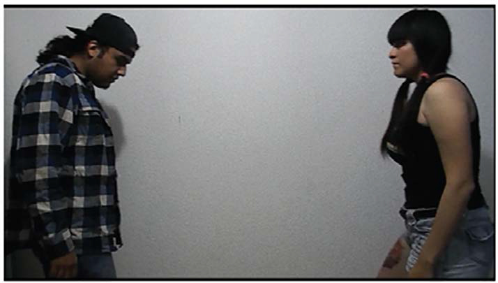 Durante el performance se desarrolla una serie de comportamientos muy característicos de una pareja que atraviesa por una situación de conflicto, y aunque se muestra un juego de roles sociales, también se alcanza a comprender la problemática principal por la que se ve involucrada.