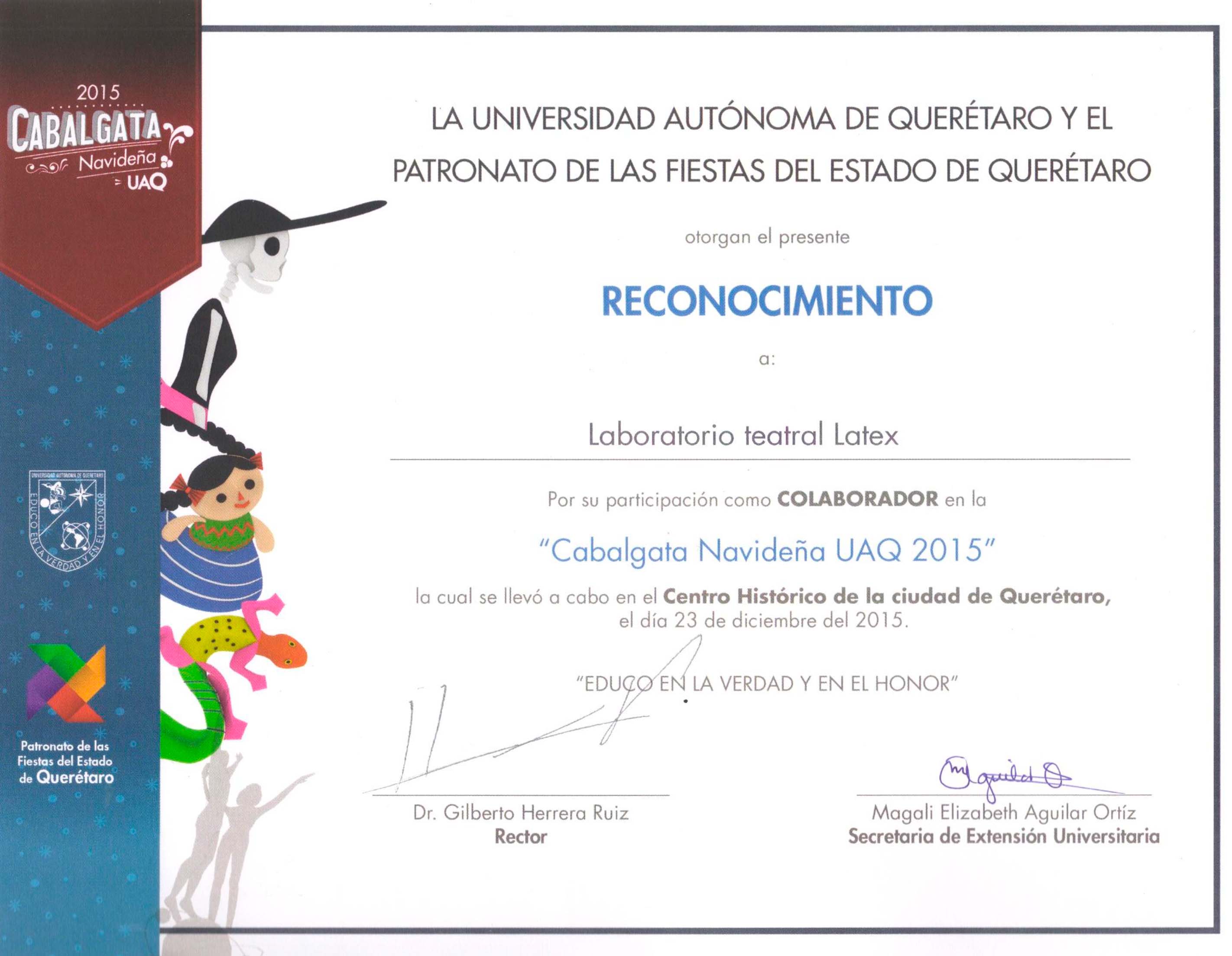 Látex, “Reconocimiento colaboración en "Cabalgata Navideña UAQ 2015",” ReDCA-Latex, accessed March 10, 2026, http://redca.uaq.mx/latex/items/show/29.
